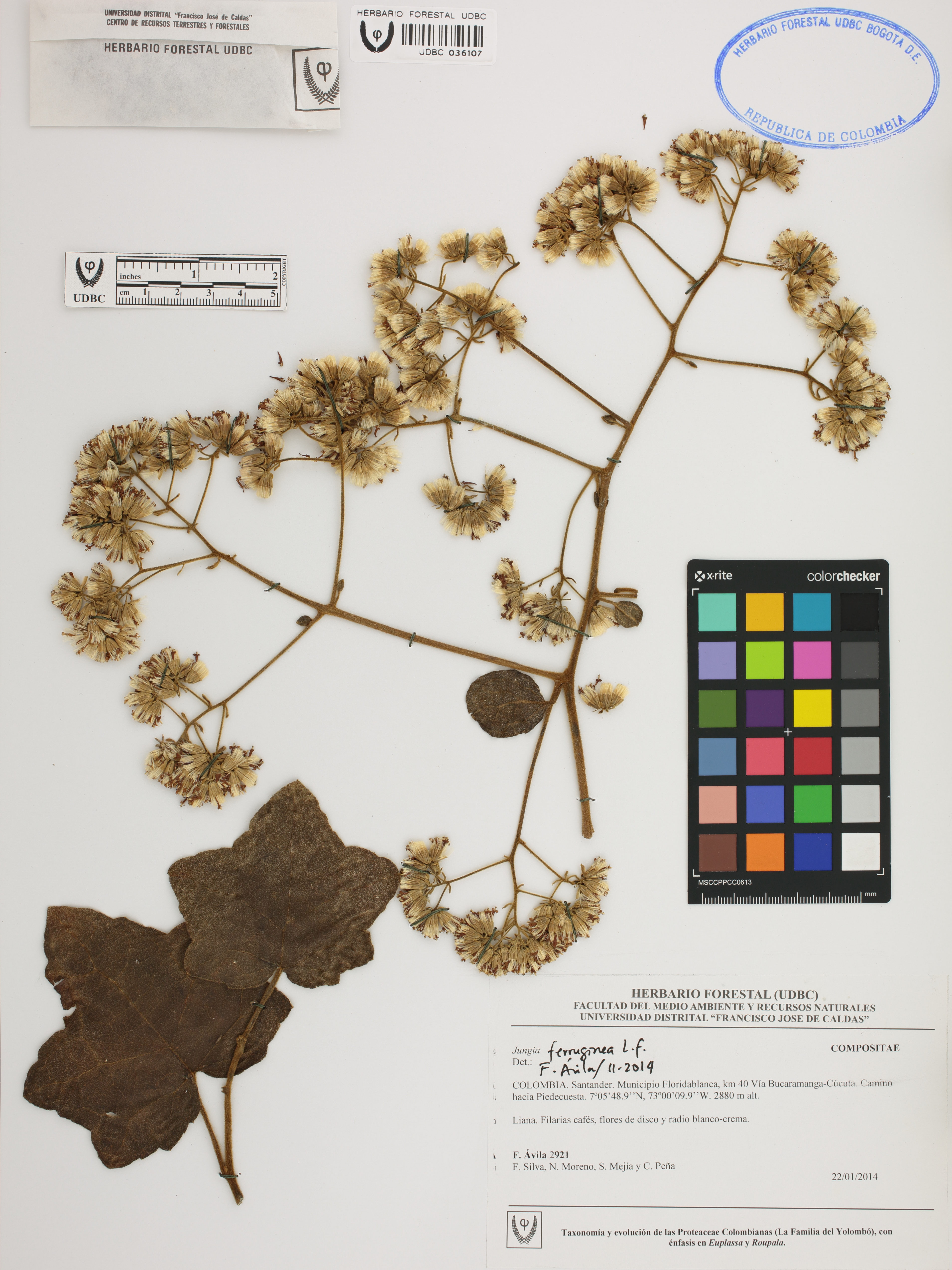 Fotografía del ejemplar Ávila, F. 2921, determinado como Jungia ferruginea en el año 2014