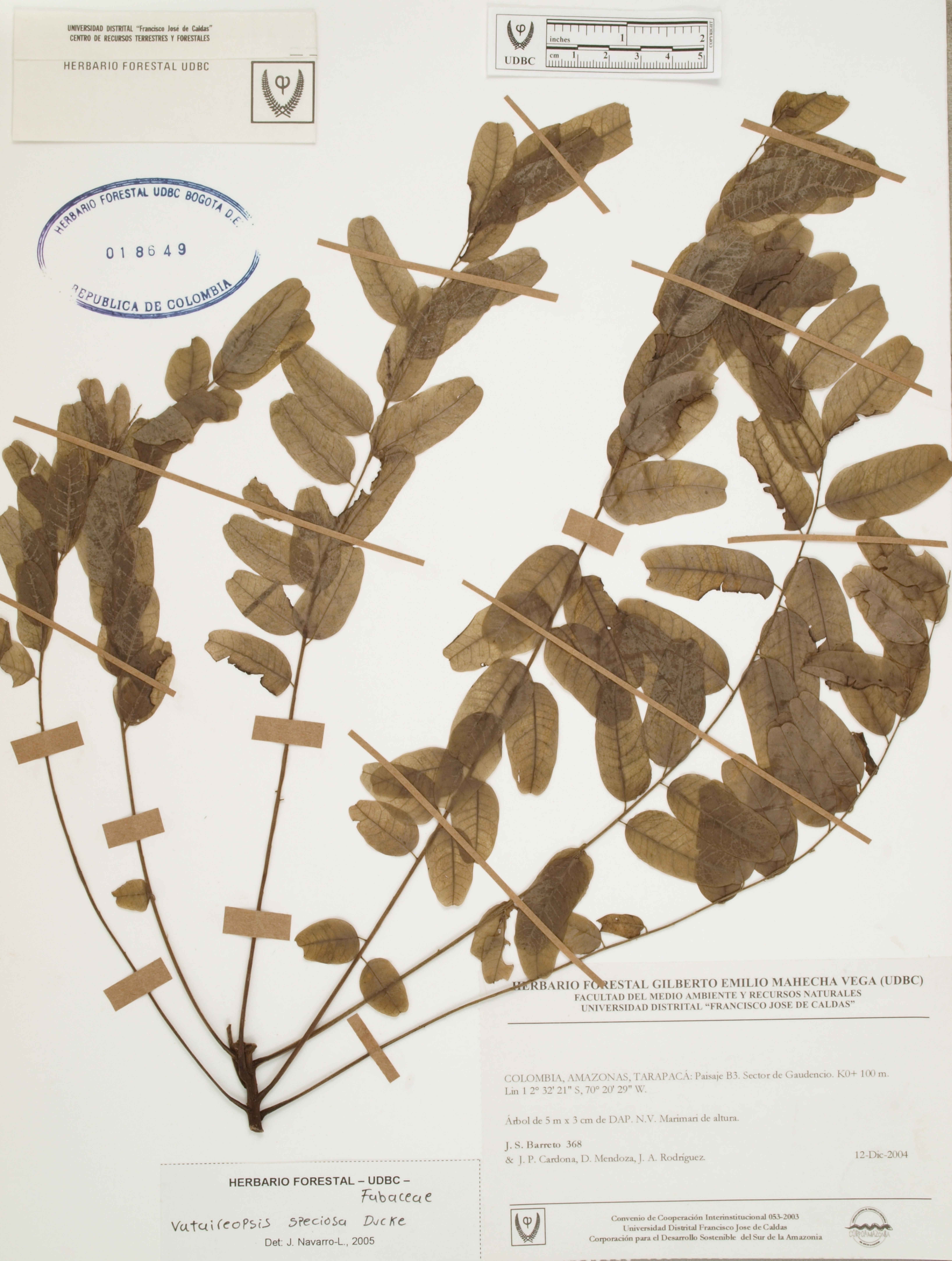 | dc.description | Fotografía del ejemplar Barreto, J. 368, determinado como Vataireopsis speciosa en el año 2005 | |