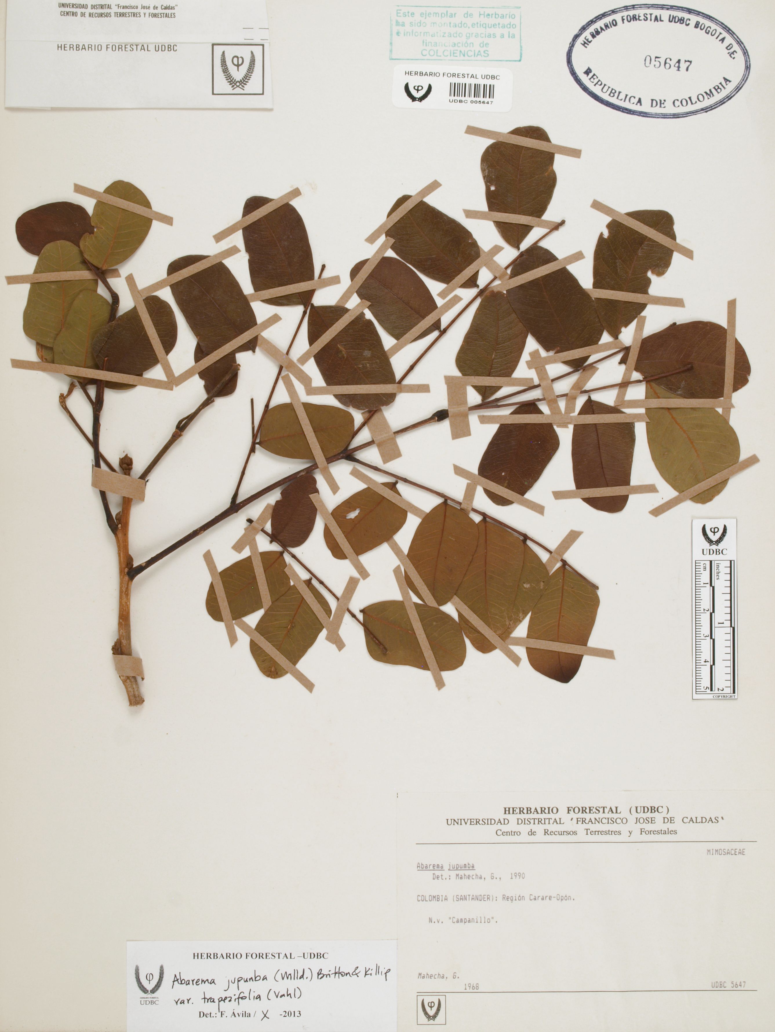 | dc.description | Fotografía del ejemplar Mahecha, G., determinado como Abarema jupunba var. trapezifolia en el año 2013 | |