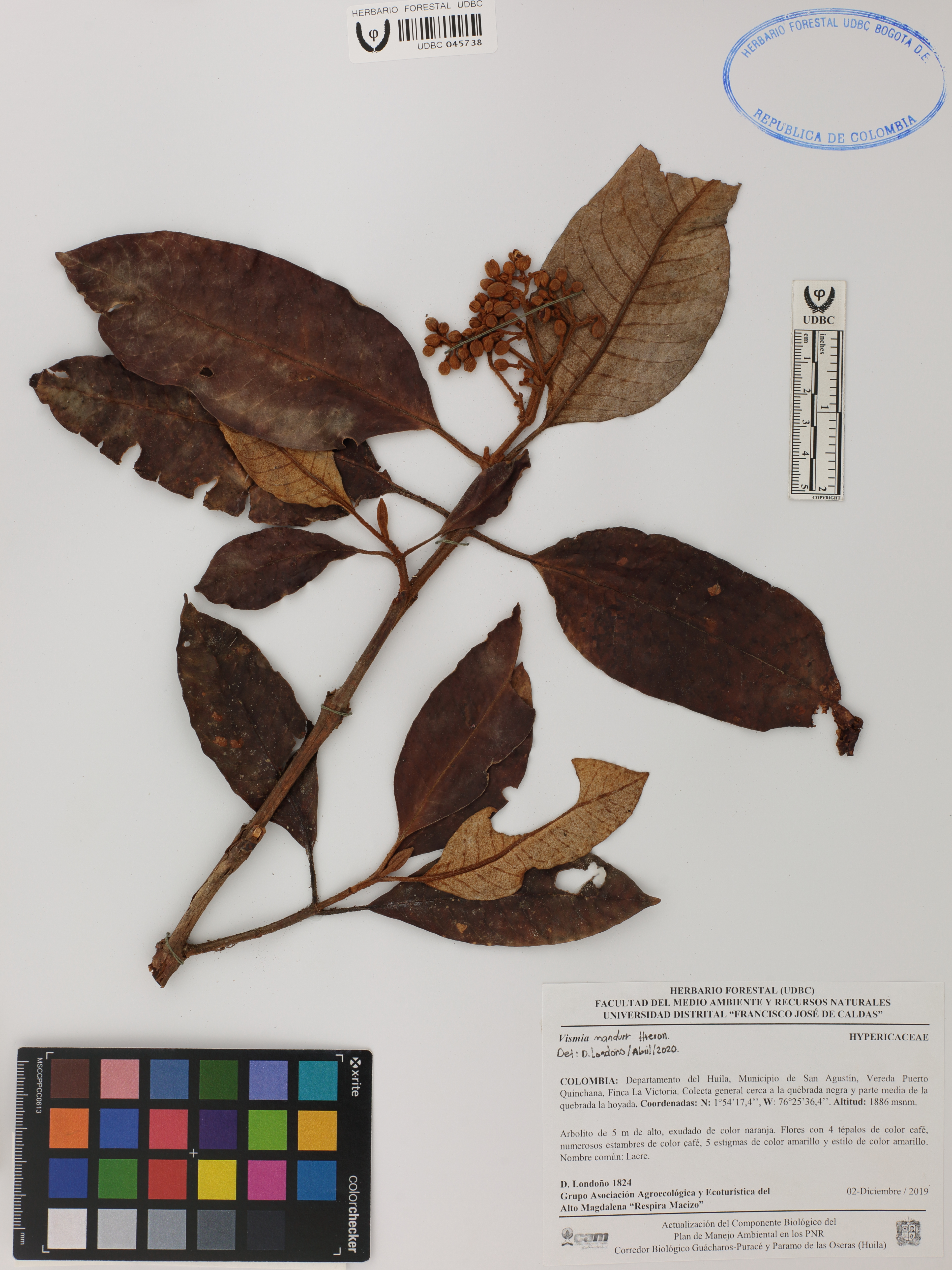 Fotografía del ejemplar Londoño, D. 1824, determinado como Vismia mandurr en el año 2020