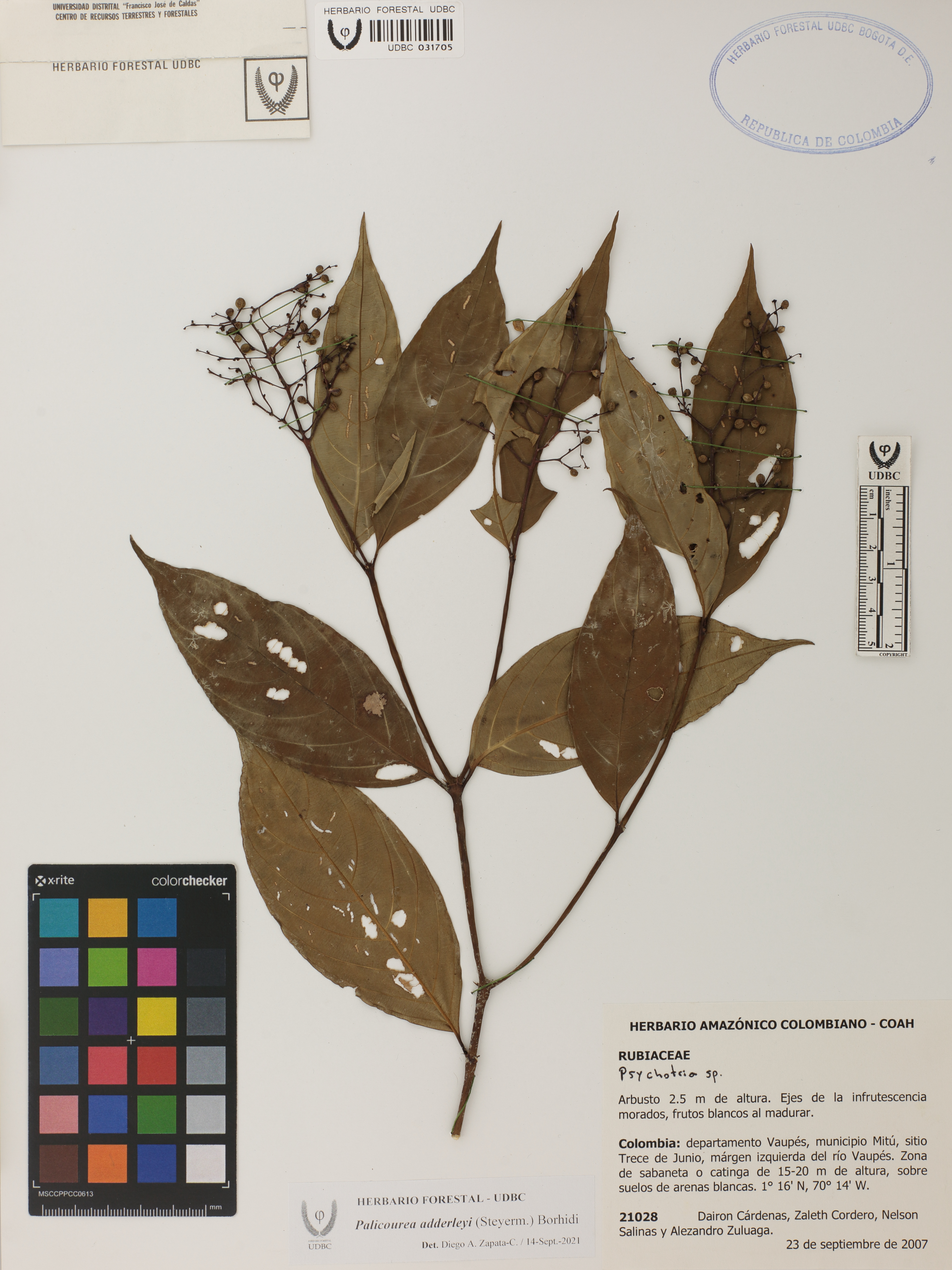 Fotografía del ejemplar Cárdenas, D. 21028, determinado como Palicourea adderleyi en el año 2021