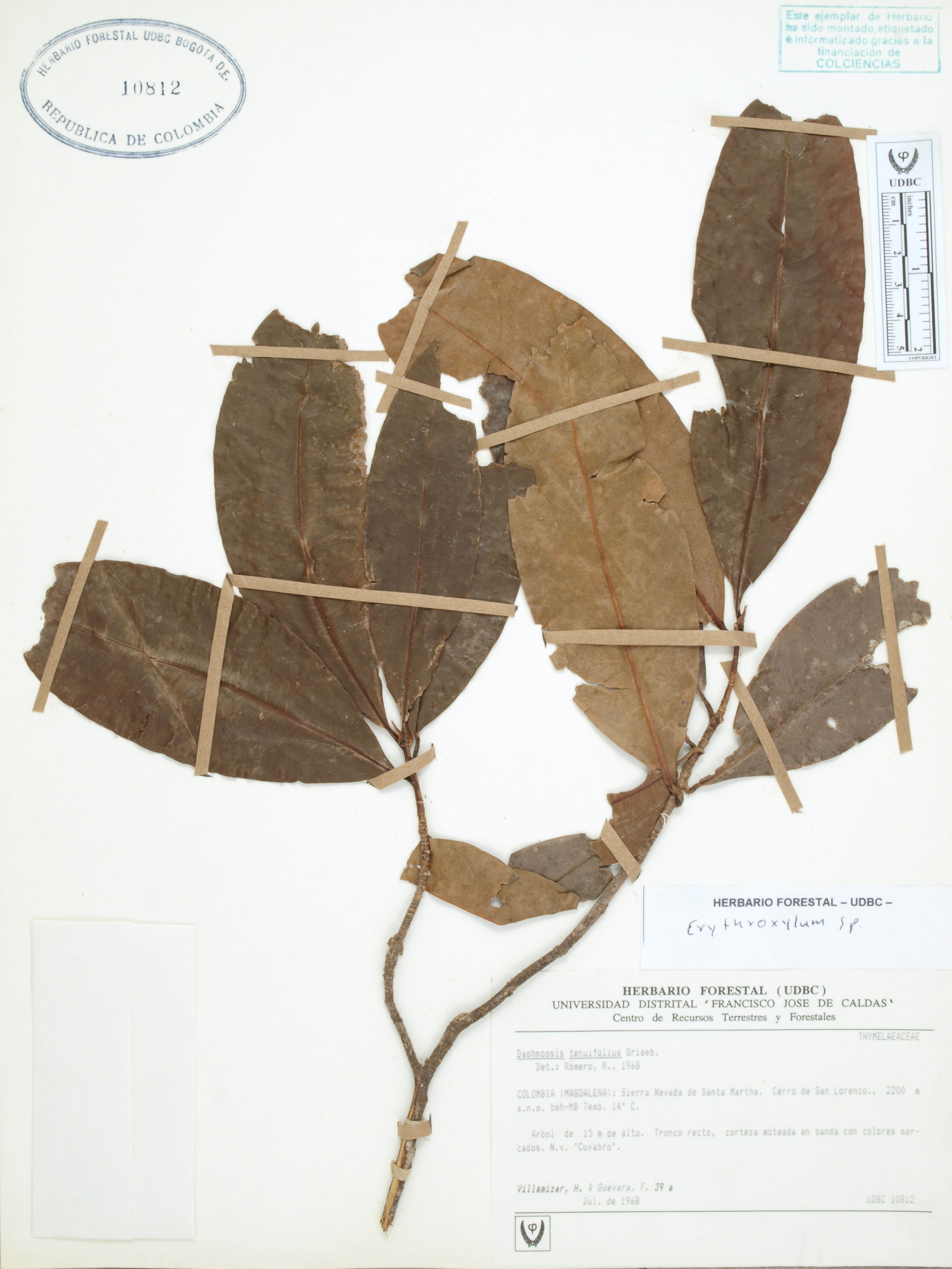 | dc.description | Fotografía del ejemplar Villamizar, H. 39, determinado como Erythroxylum sp. en el año 1968 | |