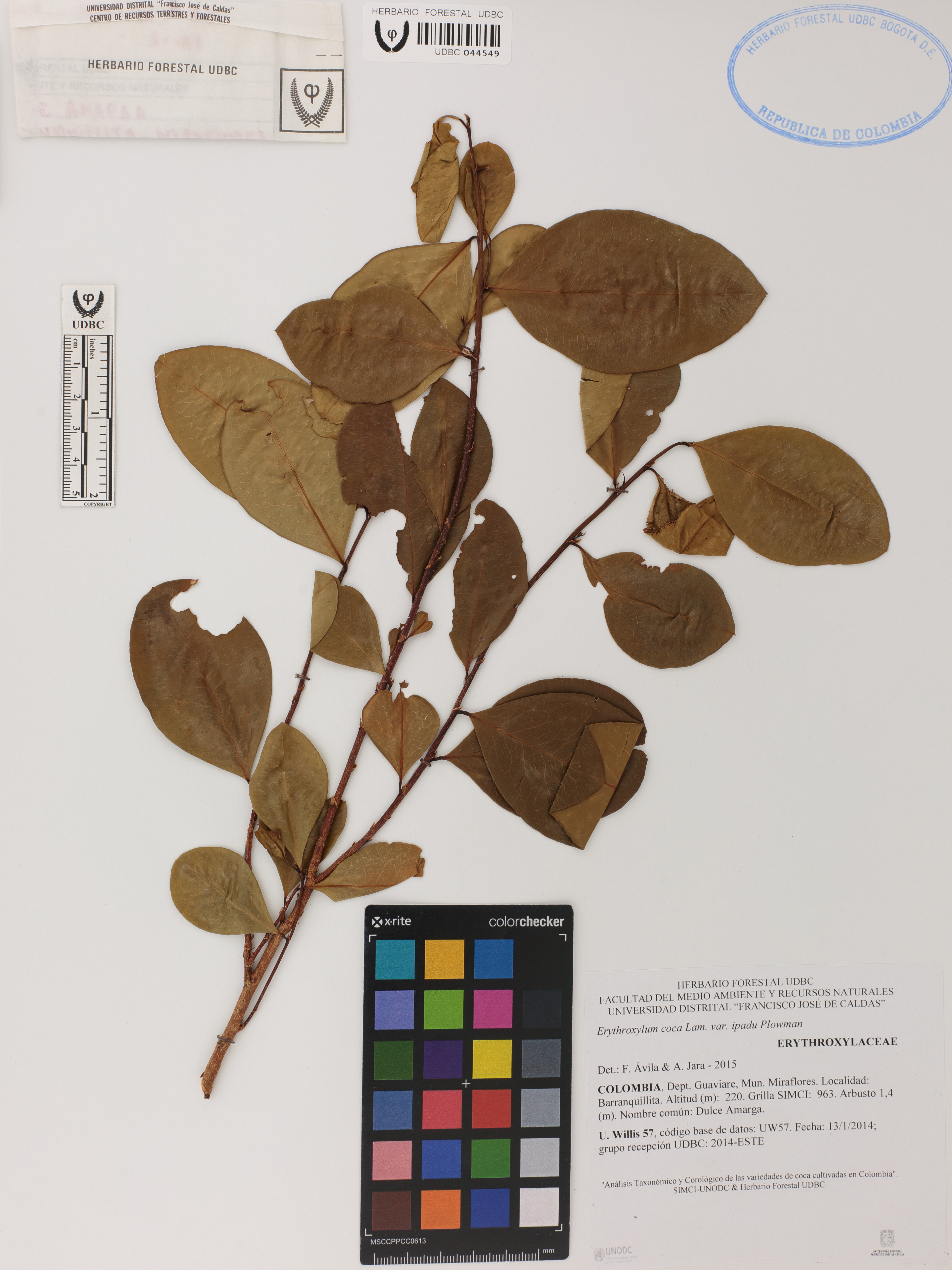 | dc.description | Fotografía del ejemplar Willis, U. 57, determinado como Erythroxylum coca var. ipadu en el año 2015 | |