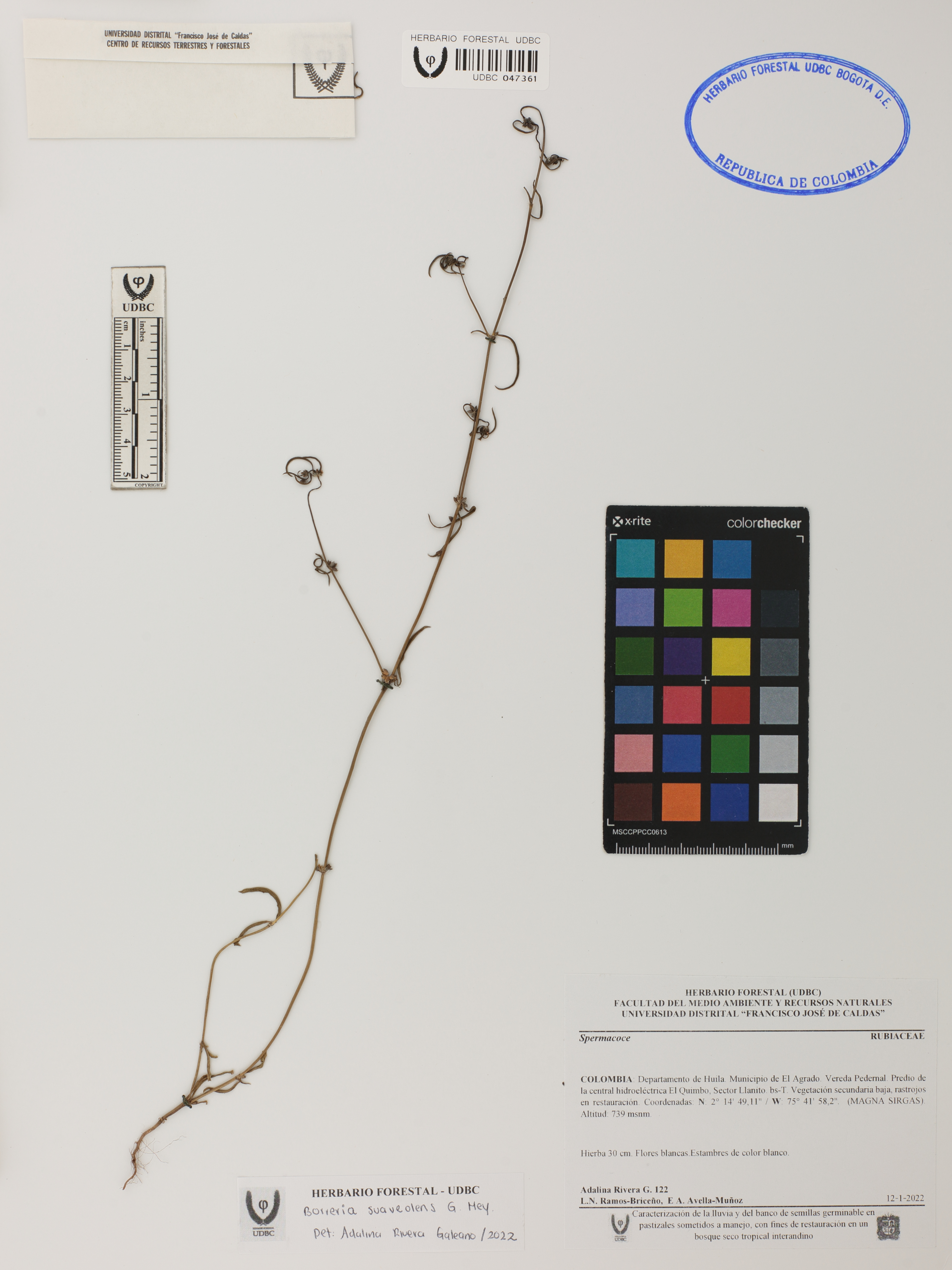 Fotografía del ejemplar Rivera-G., Adalina 122, determinado como Spermacoce suaveolens en el año 2022