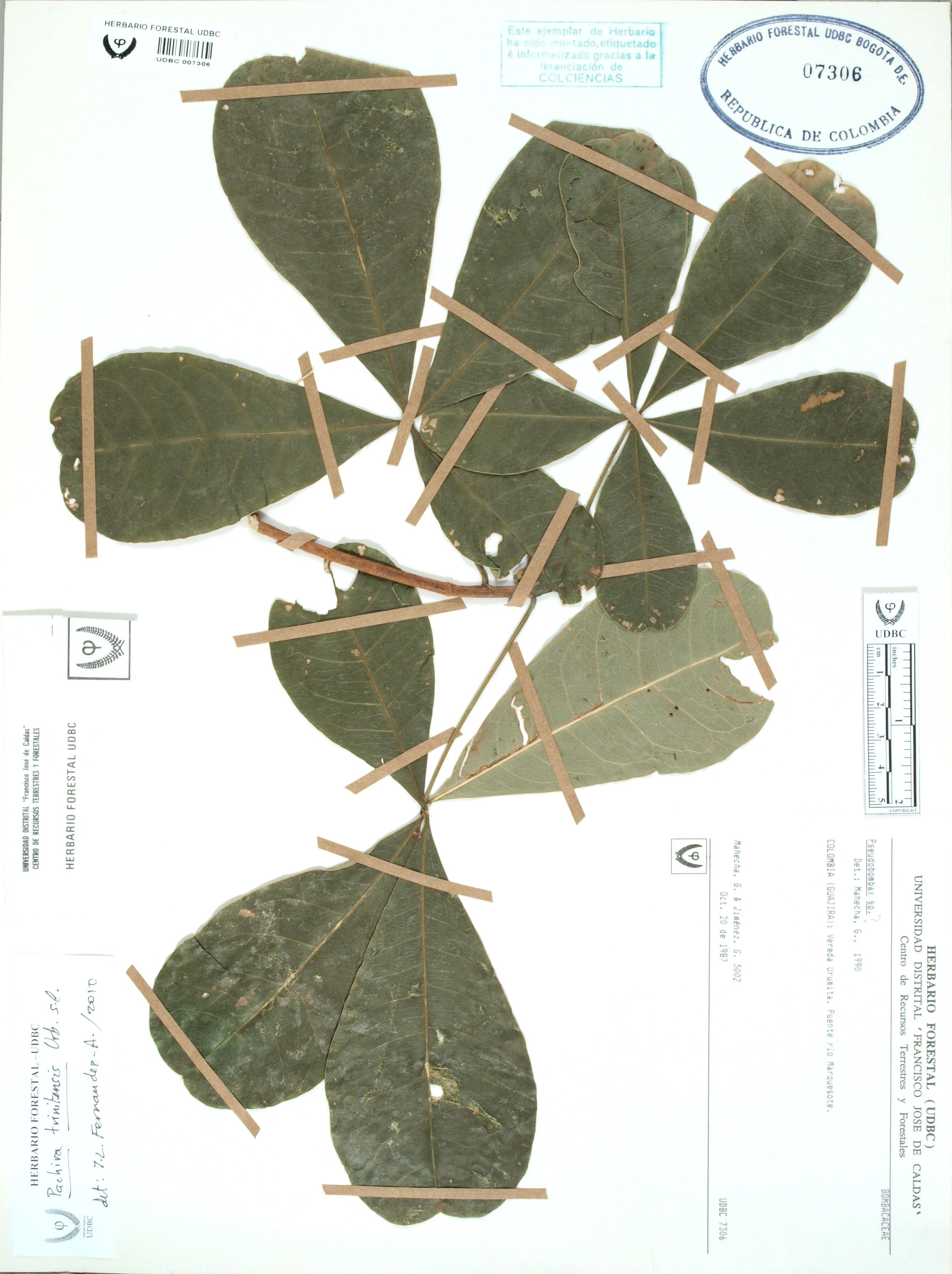 Fotografía del ejemplar Mahecha, G. 5002, determinado como Pachira trinitensis en el año 2010