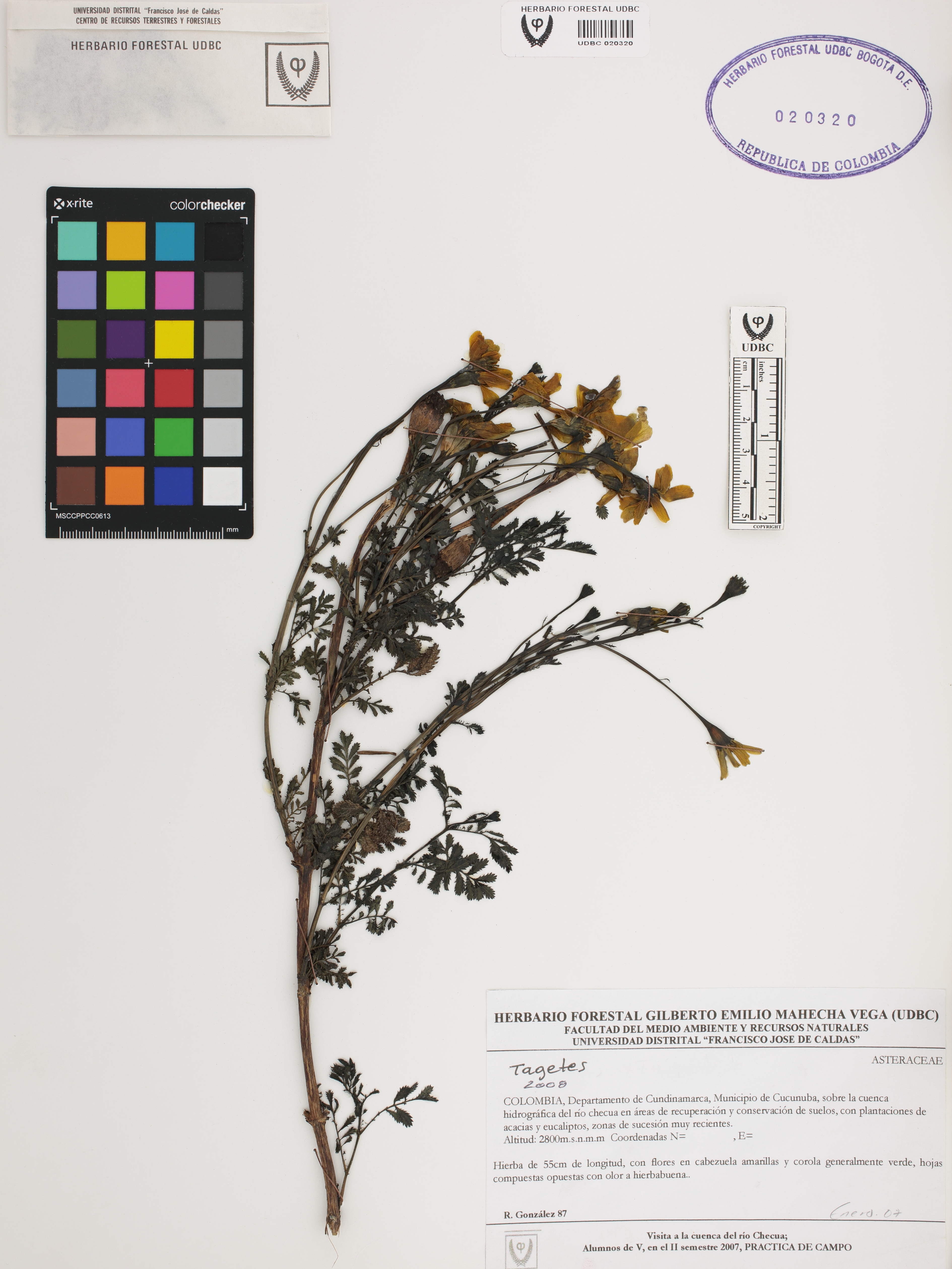 Fotografía del ejemplar González, R. 87, determinado como Tagetes sp. en el año 2008
