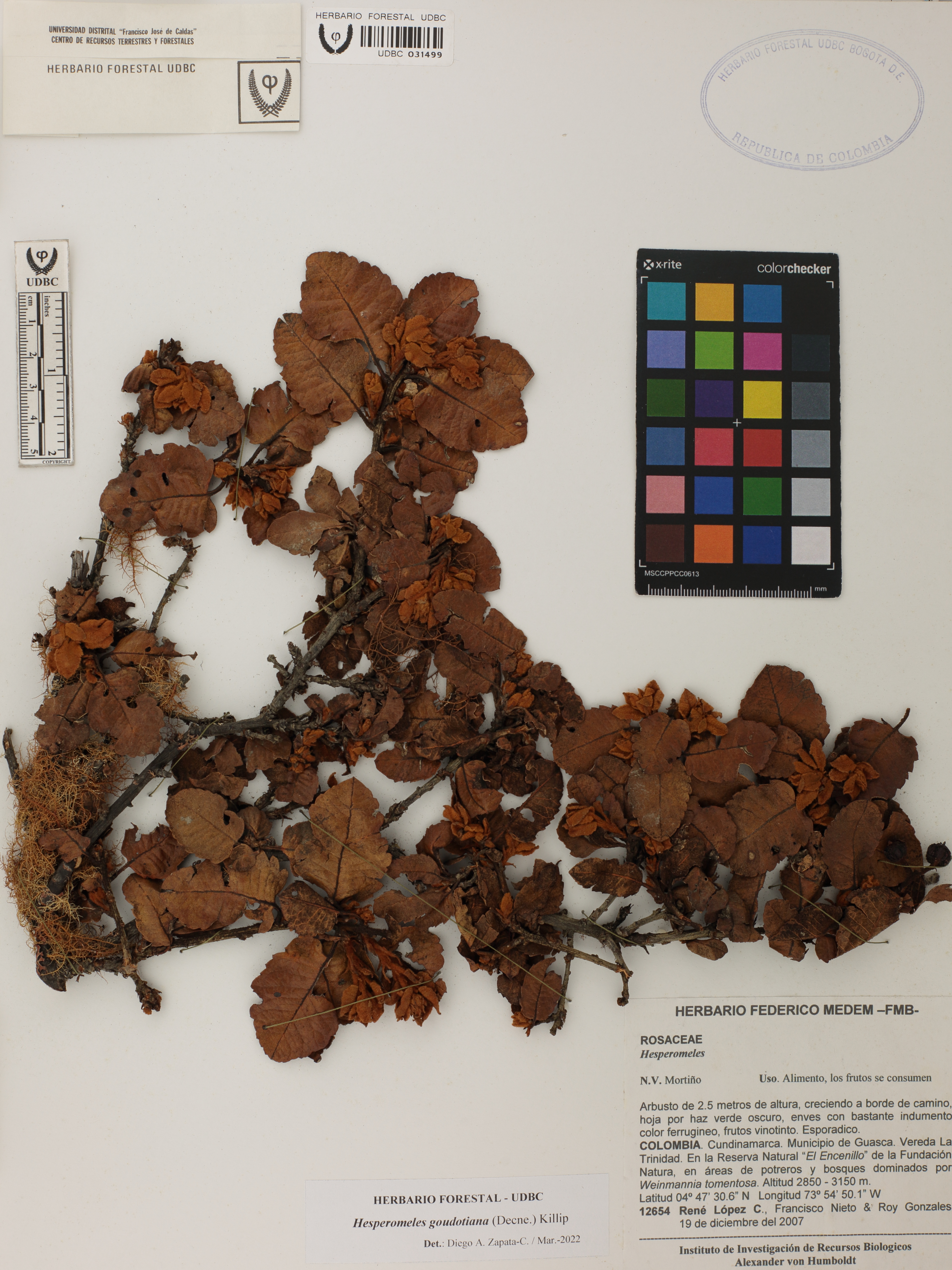 | dc.description | Fotografía del ejemplar López, R. 12654, determinado como Hesperomeles goudotiana en el año 2022 | |