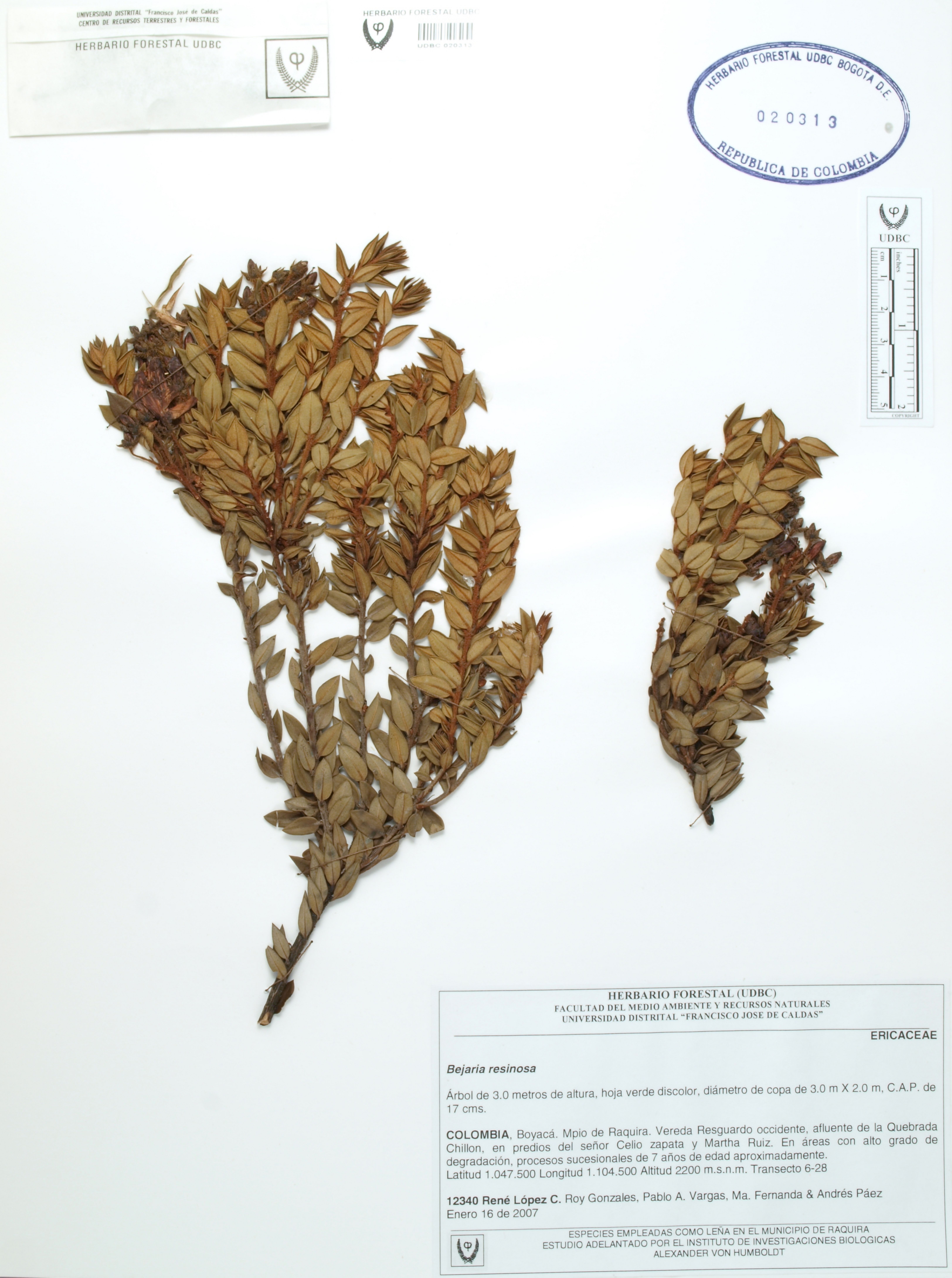 | dc.description | Fotografía del ejemplar López, R. 12340, determinado como Bejaria resinosa | |
