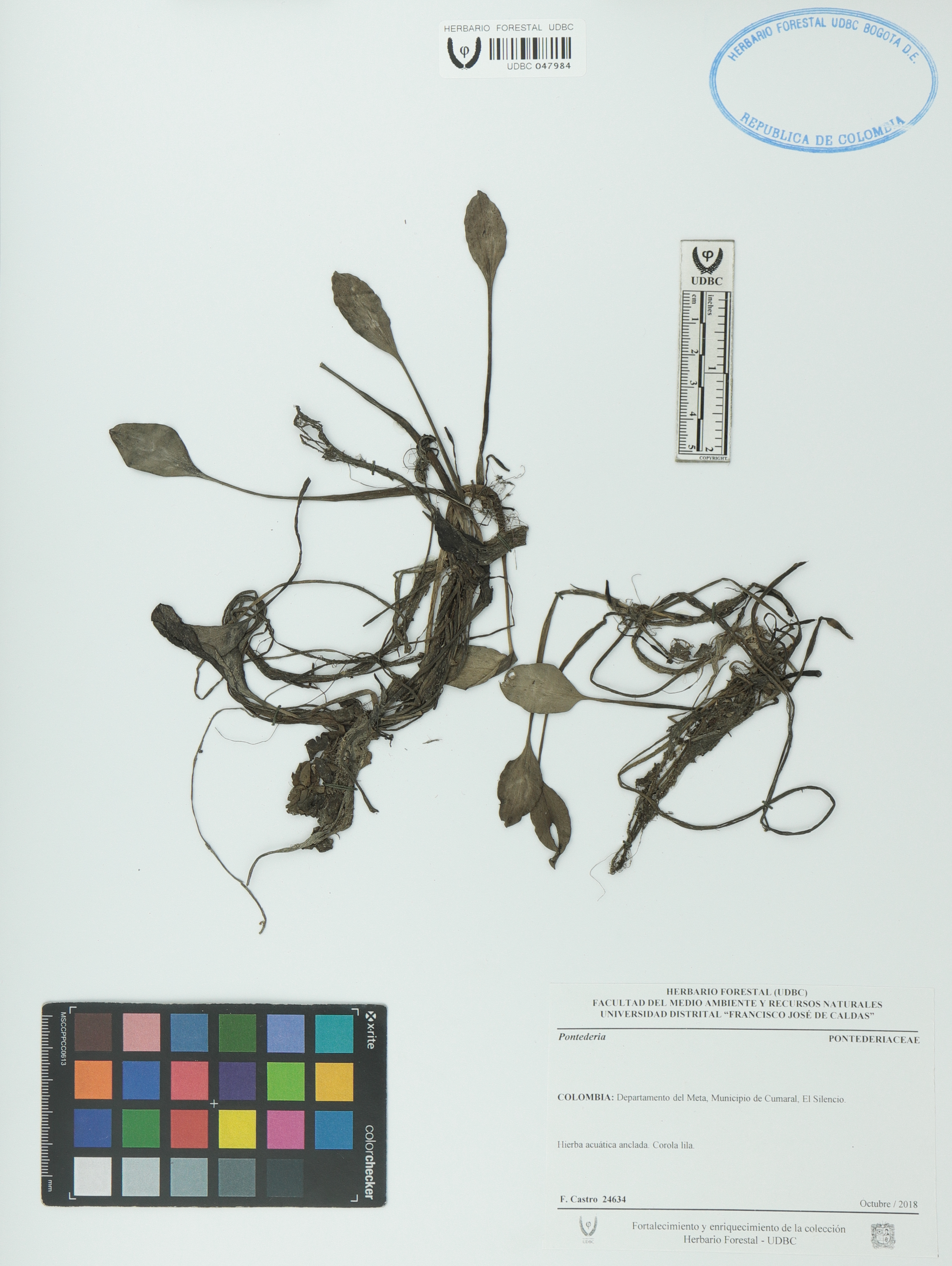 Fotografía del ejemplar Castro, F. 24634, determinado como Pontederia sp.