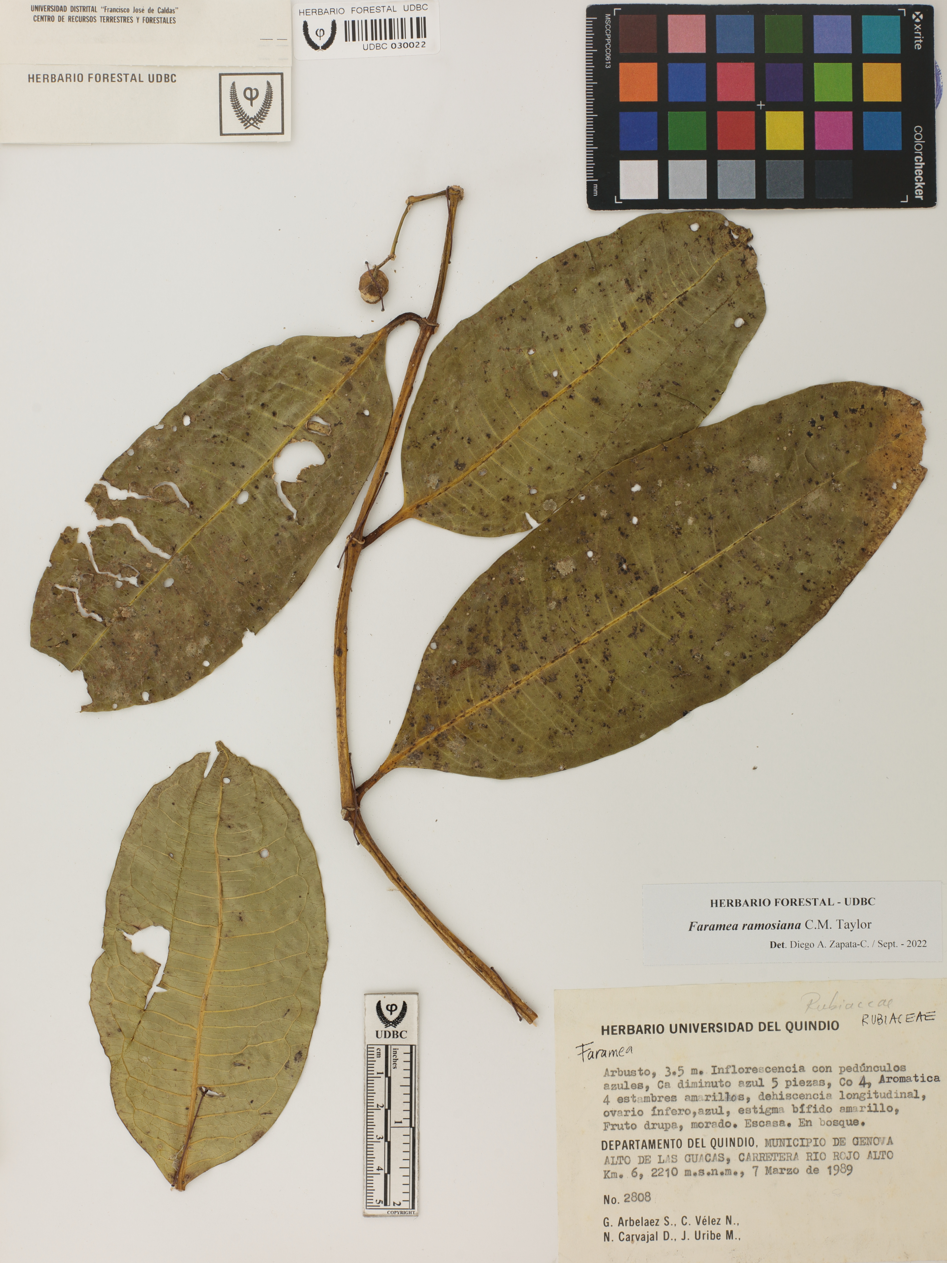 Fotografía del ejemplar Arbeláez, G. 2808, determinado como Faramea ramosiana en el año 2022