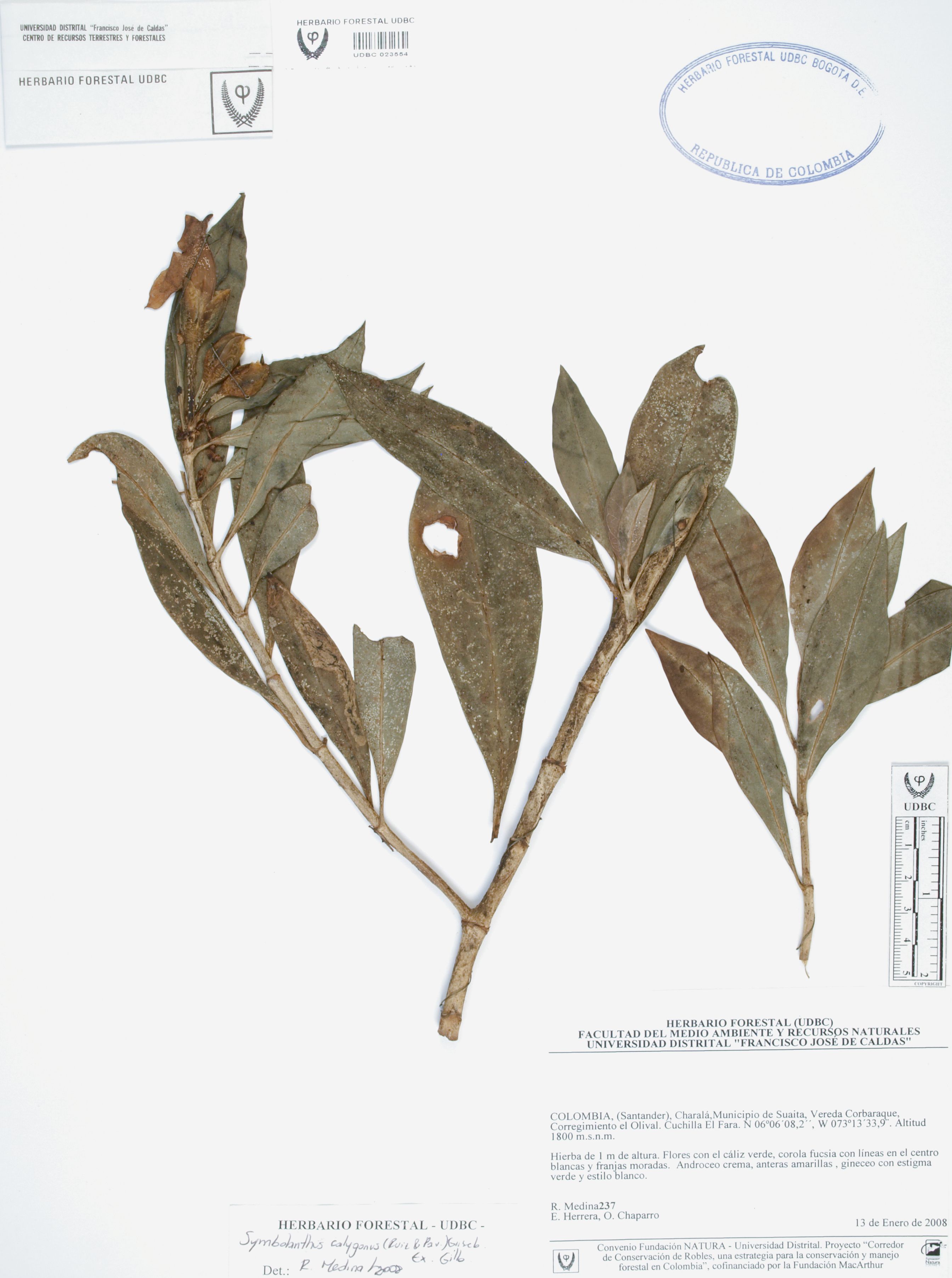 Fotografía del ejemplar Medina, R. 237, determinado como Symbolanthus calygonus en el año 2008