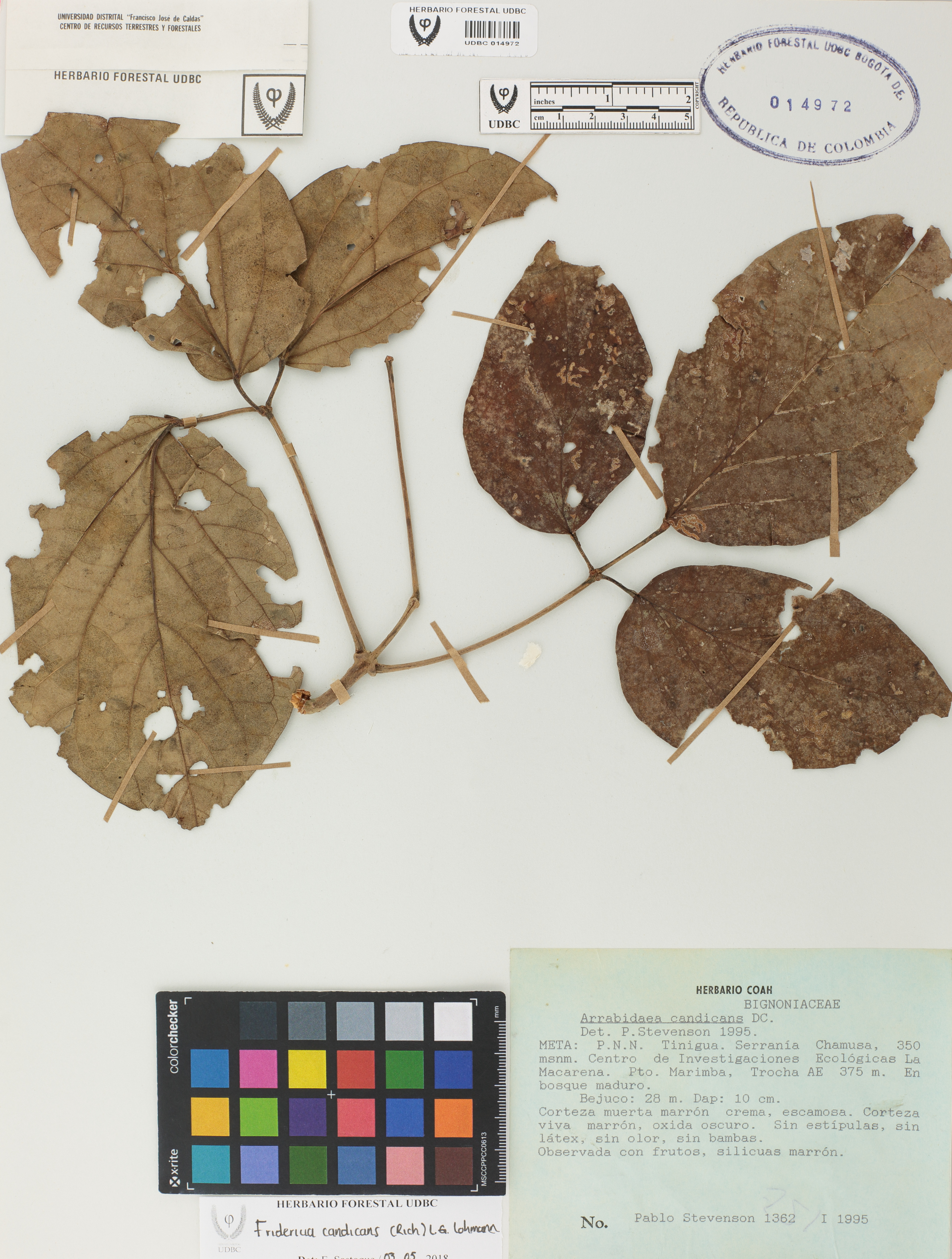 | dc.description | Fotografía del ejemplar Stevenson, P. 1362, determinado como Fridericia candicans en el año 1995 | |