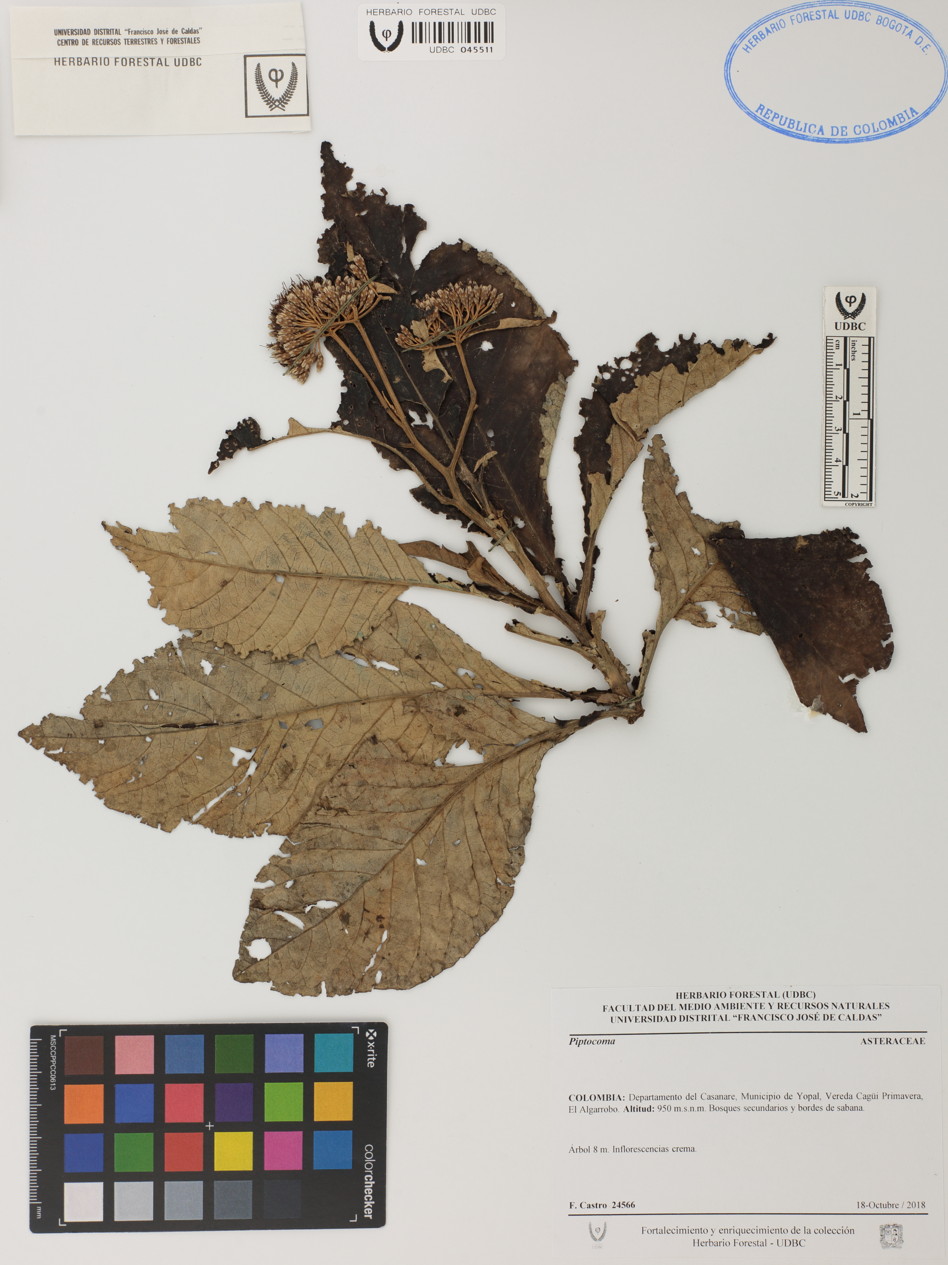 | dc.description | Fotografía del ejemplar Castro, F. 24566, determinado como Piptocoma sp. | |