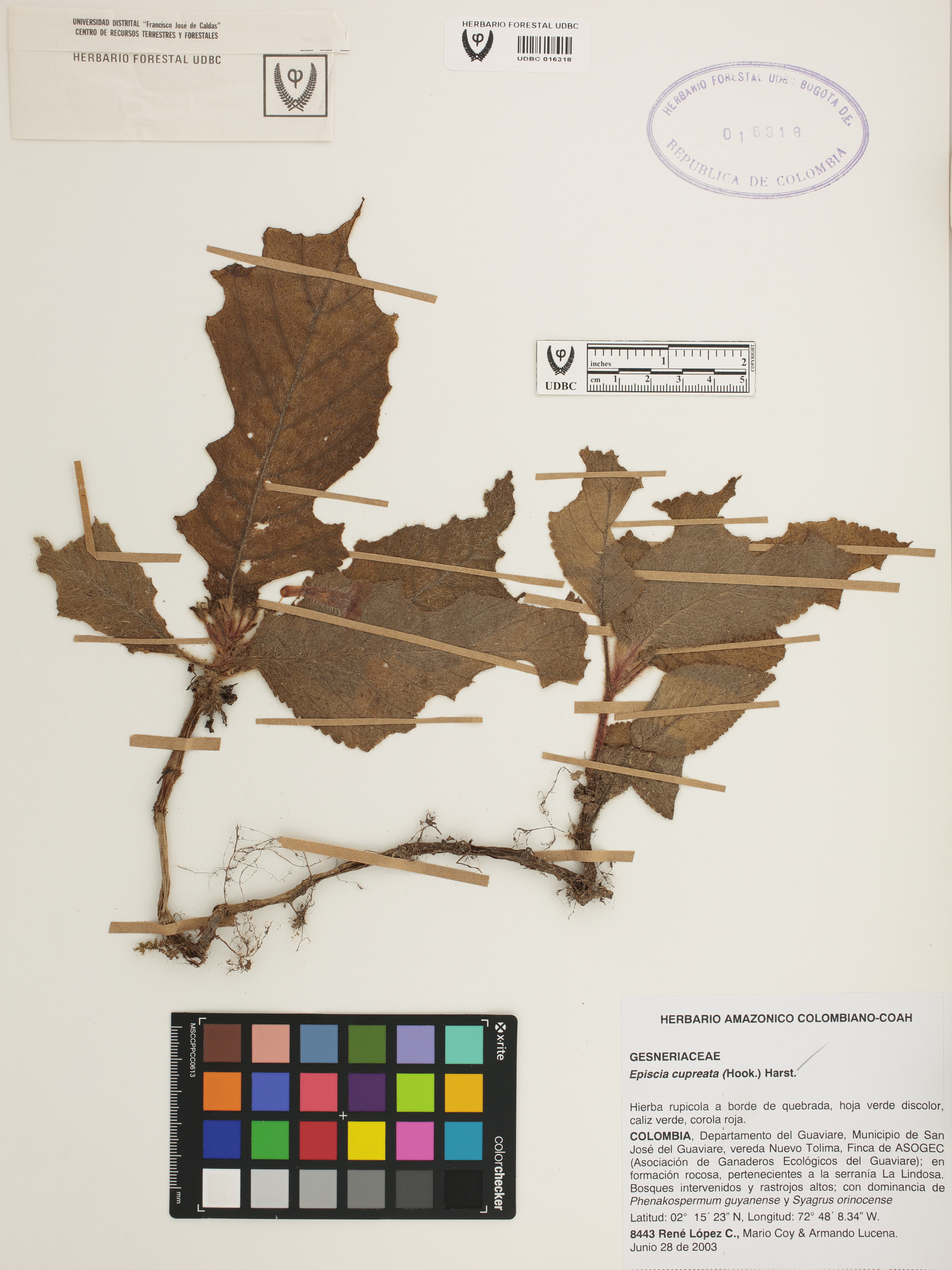 Fotografía del ejemplar López, R. 8434, determinado como Episcia cupreata