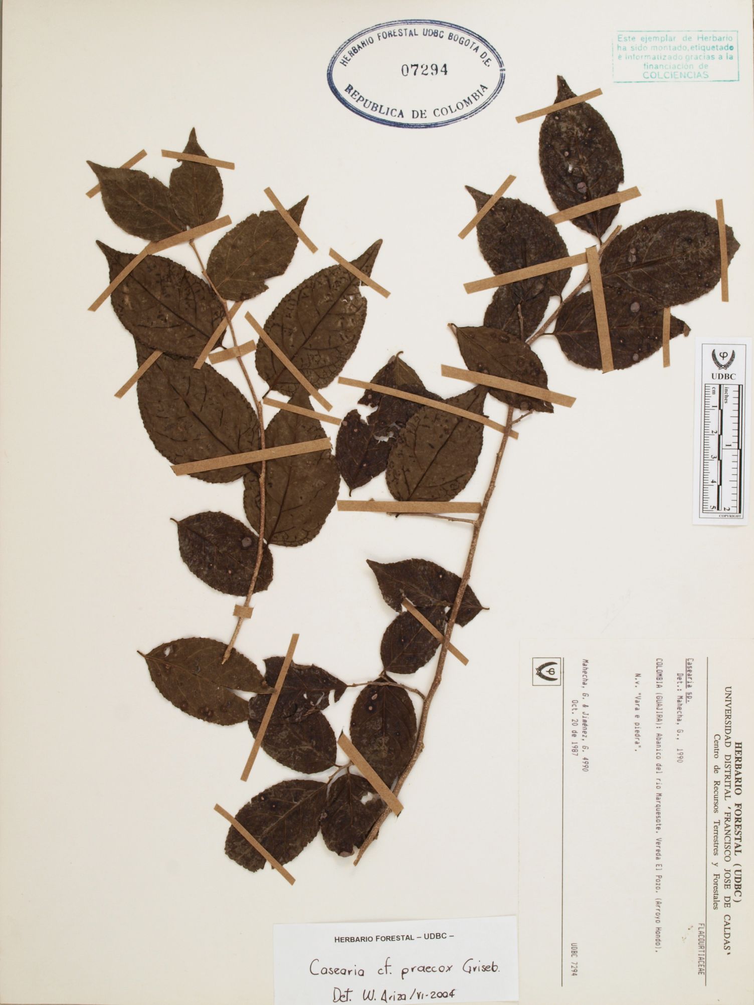 Fotografía del ejemplar Mahecha, G. 4990, determinado como Casearia praecox en el año 2004