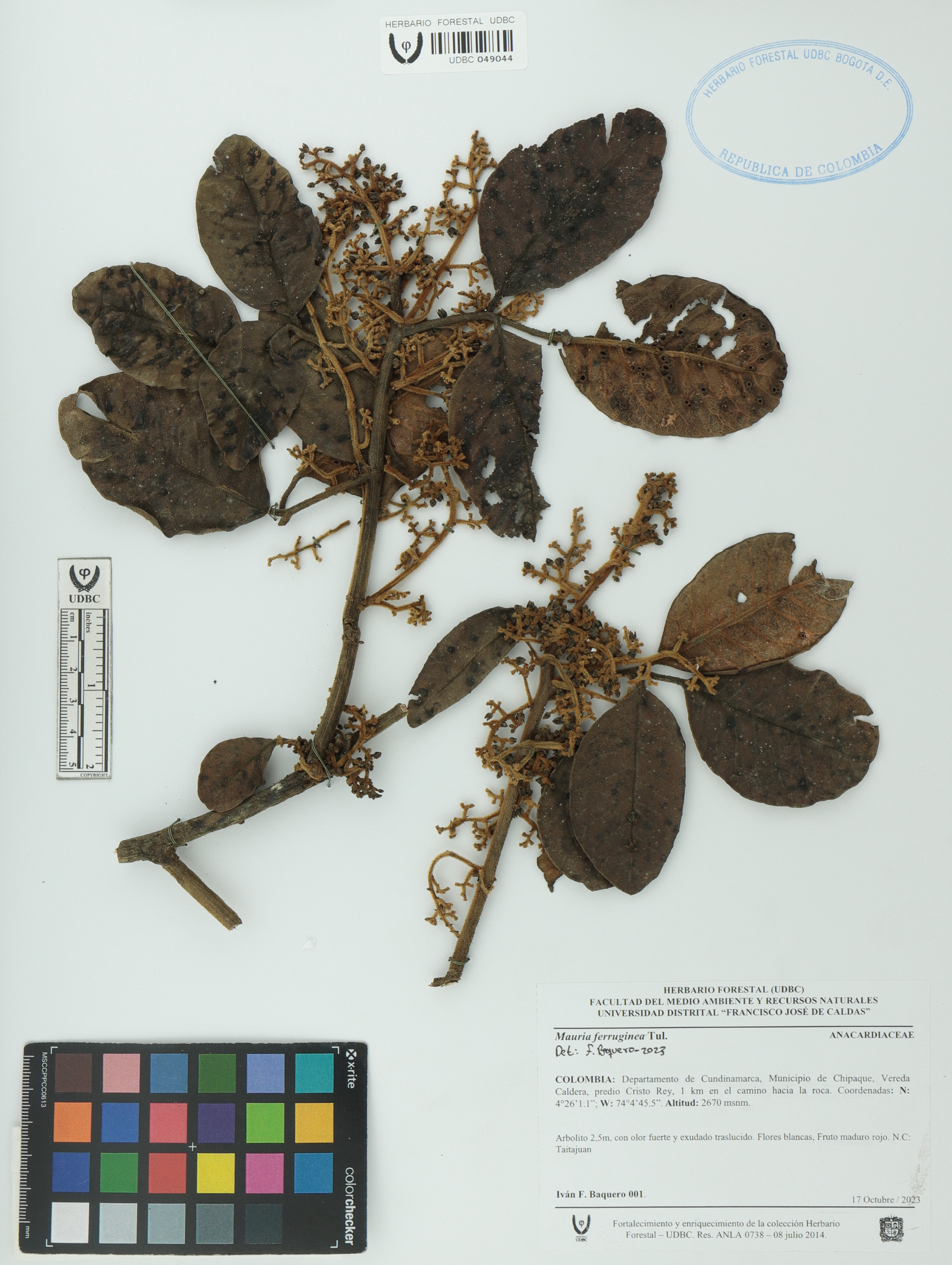 | dc.description | Fotografía del ejemplar Baquero, F. 001, determinado como Mauria ferruginea en el año 2023 | |