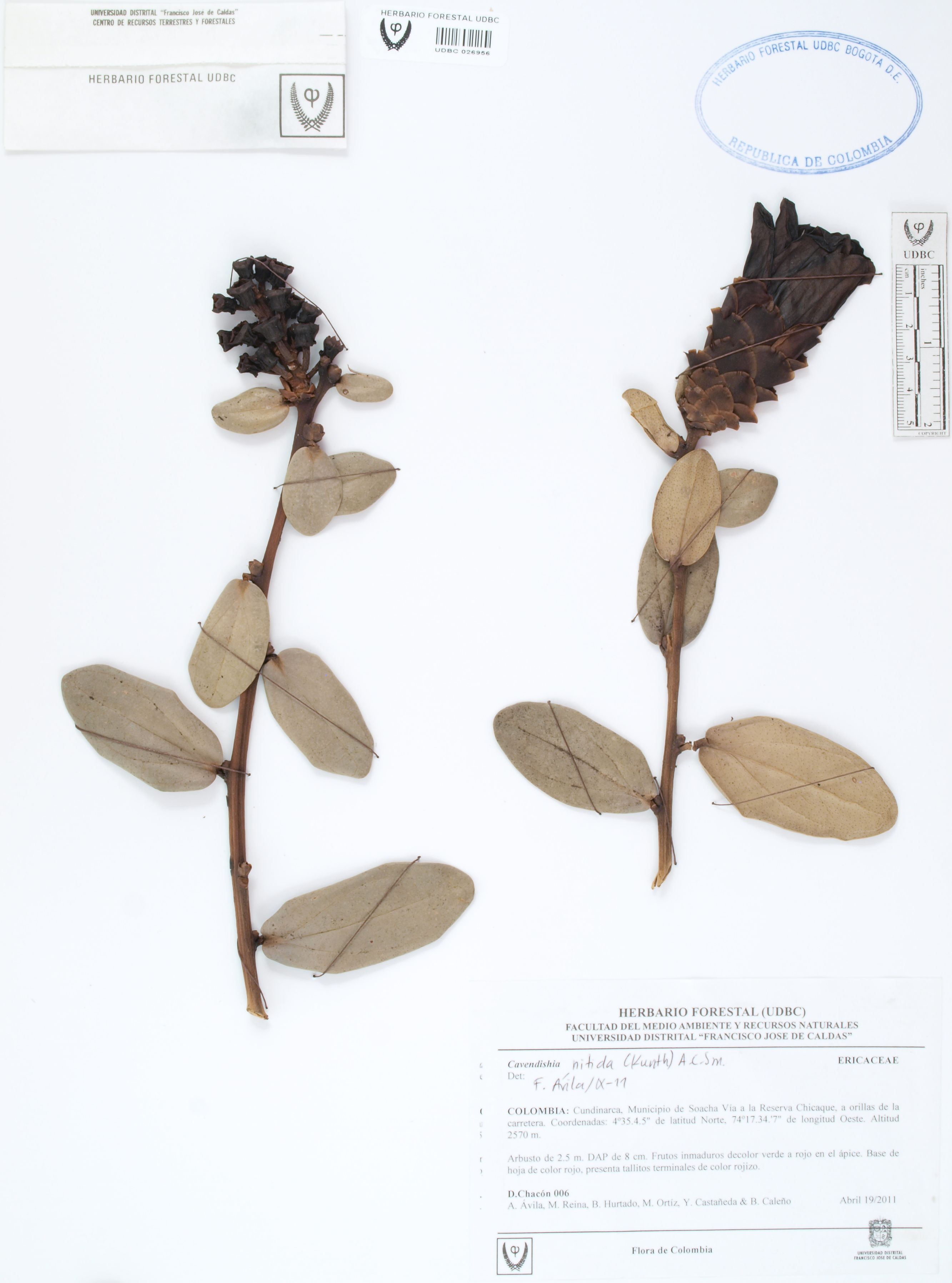 Fotografía del ejemplar Chacón, D. 6, determinado como Cavendishia nitida en el año 2011