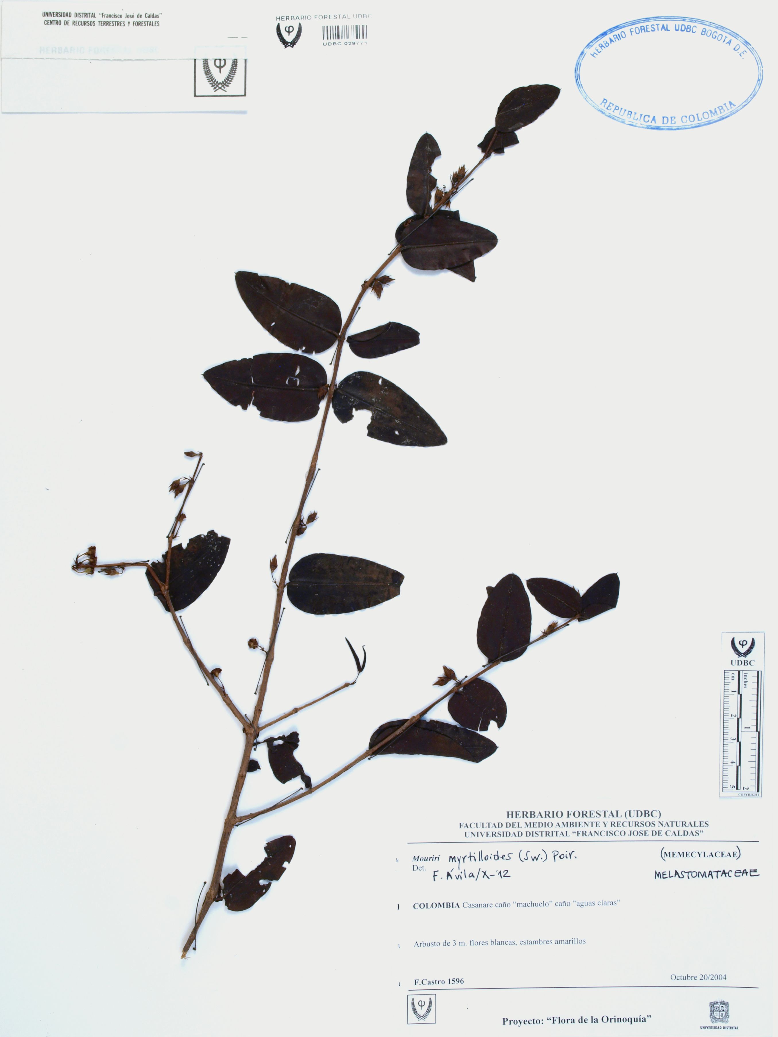 Fotografía del ejemplar Castro, F. 1596, determinado como Mouriri myrtilloides en el año 2012