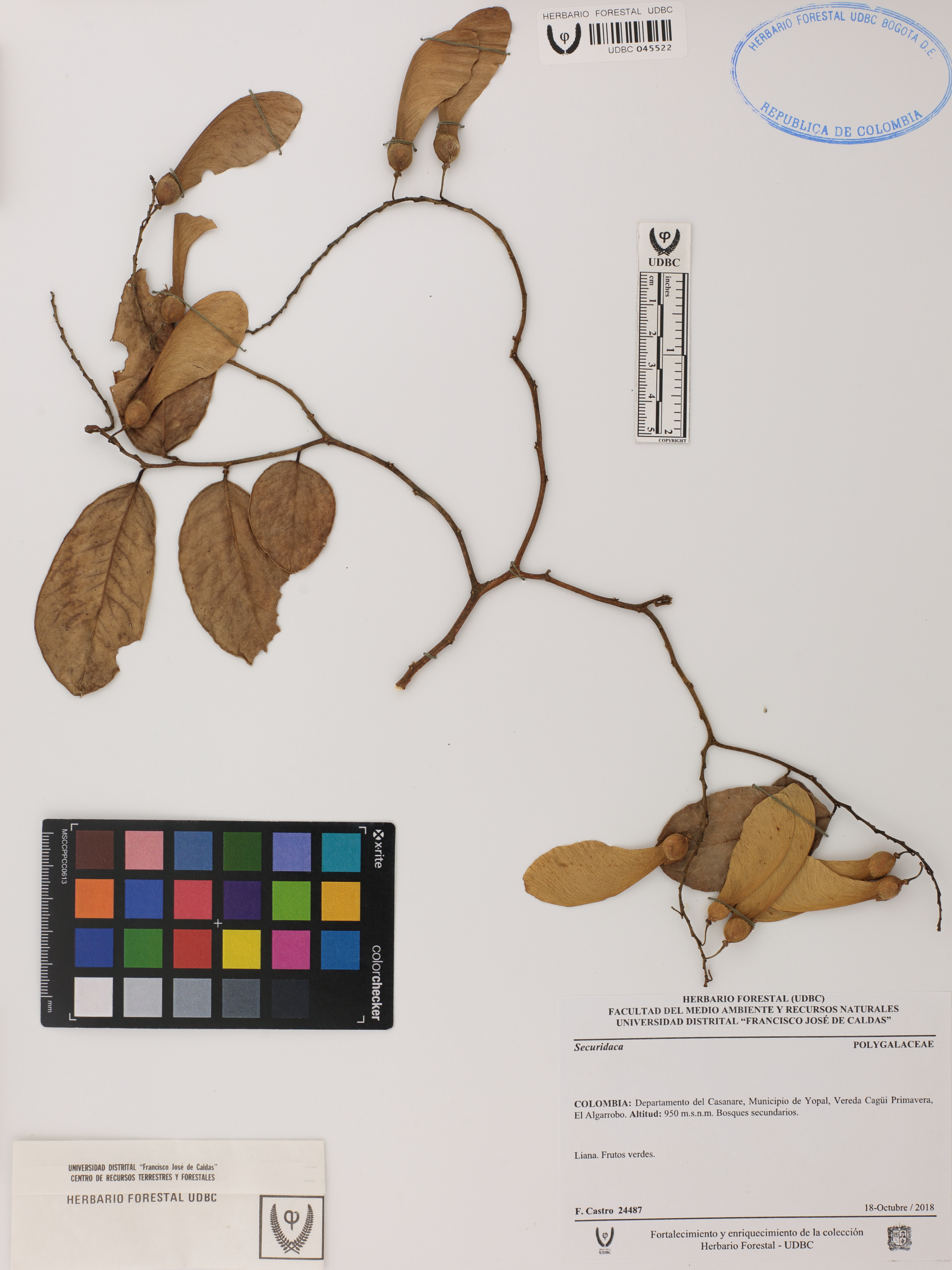Fotografía del ejemplar Castro, F. 24487, determinado como Securidaca sp.
