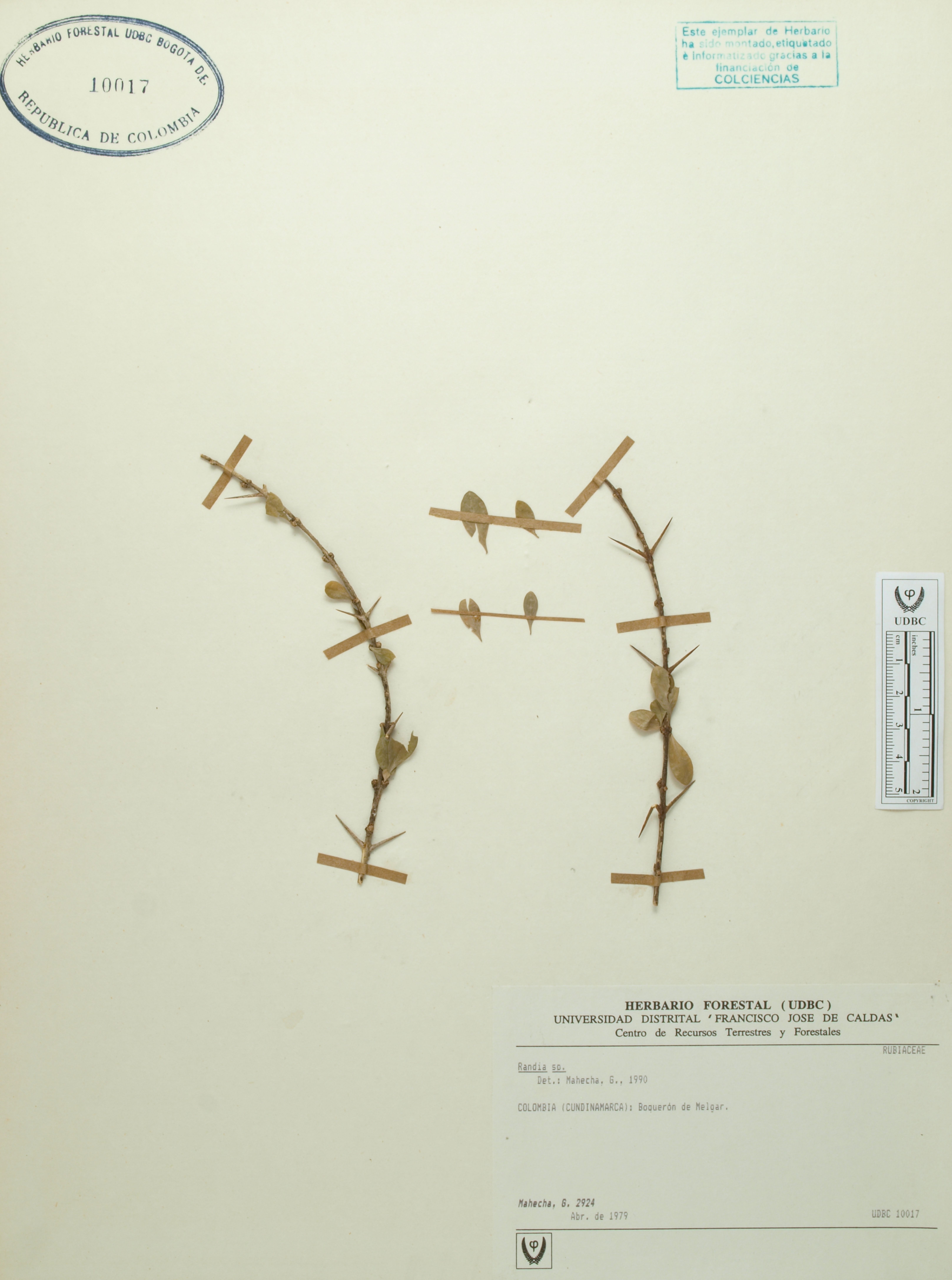 | dc.description | Fotografía del ejemplar Mahecha, G. 2924, determinado como Randia aculeata en el año 2022 | |