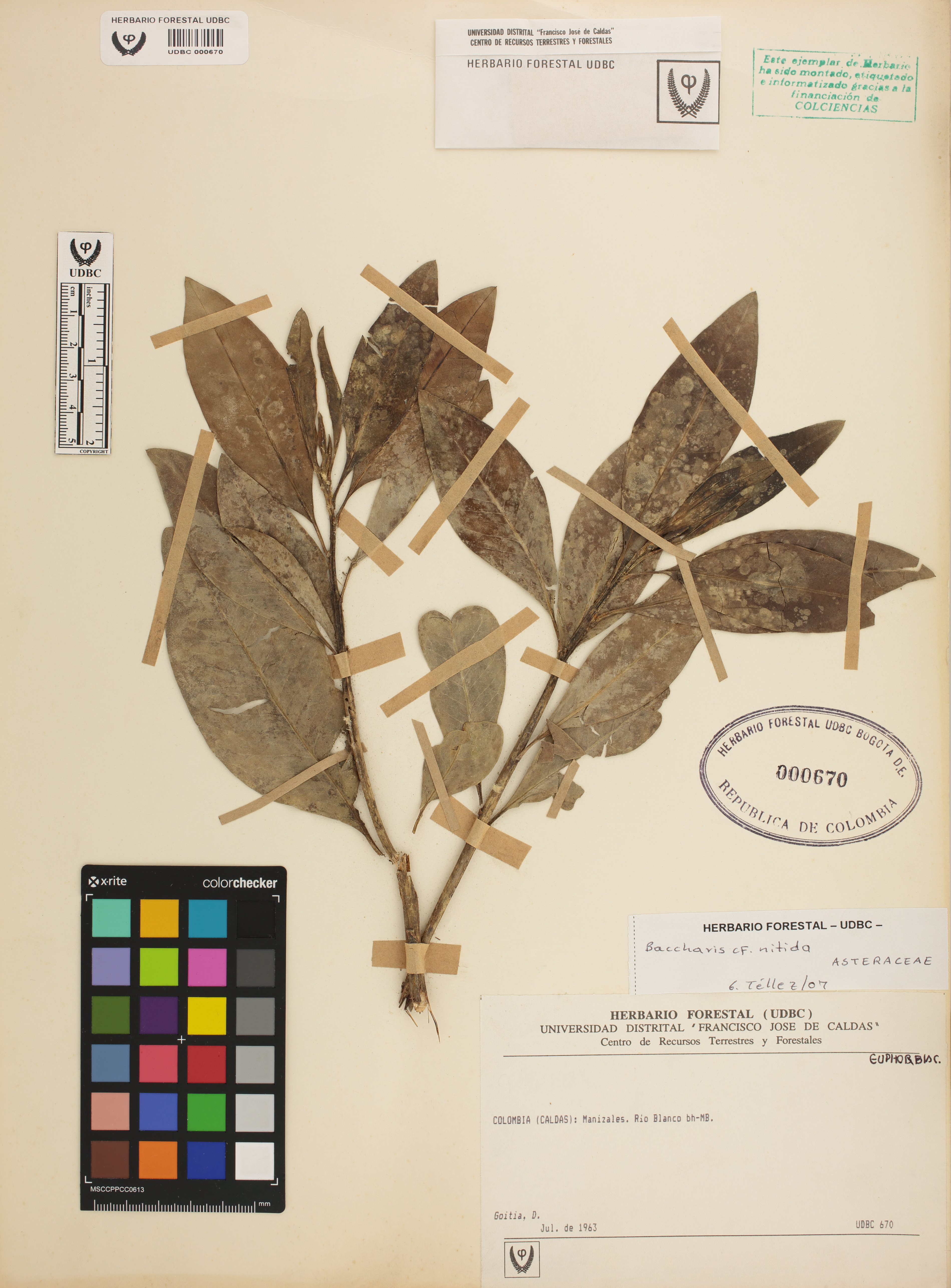 Fotografía del ejemplar Goitia, D., determinado como Baccharis nitida en el año 2007