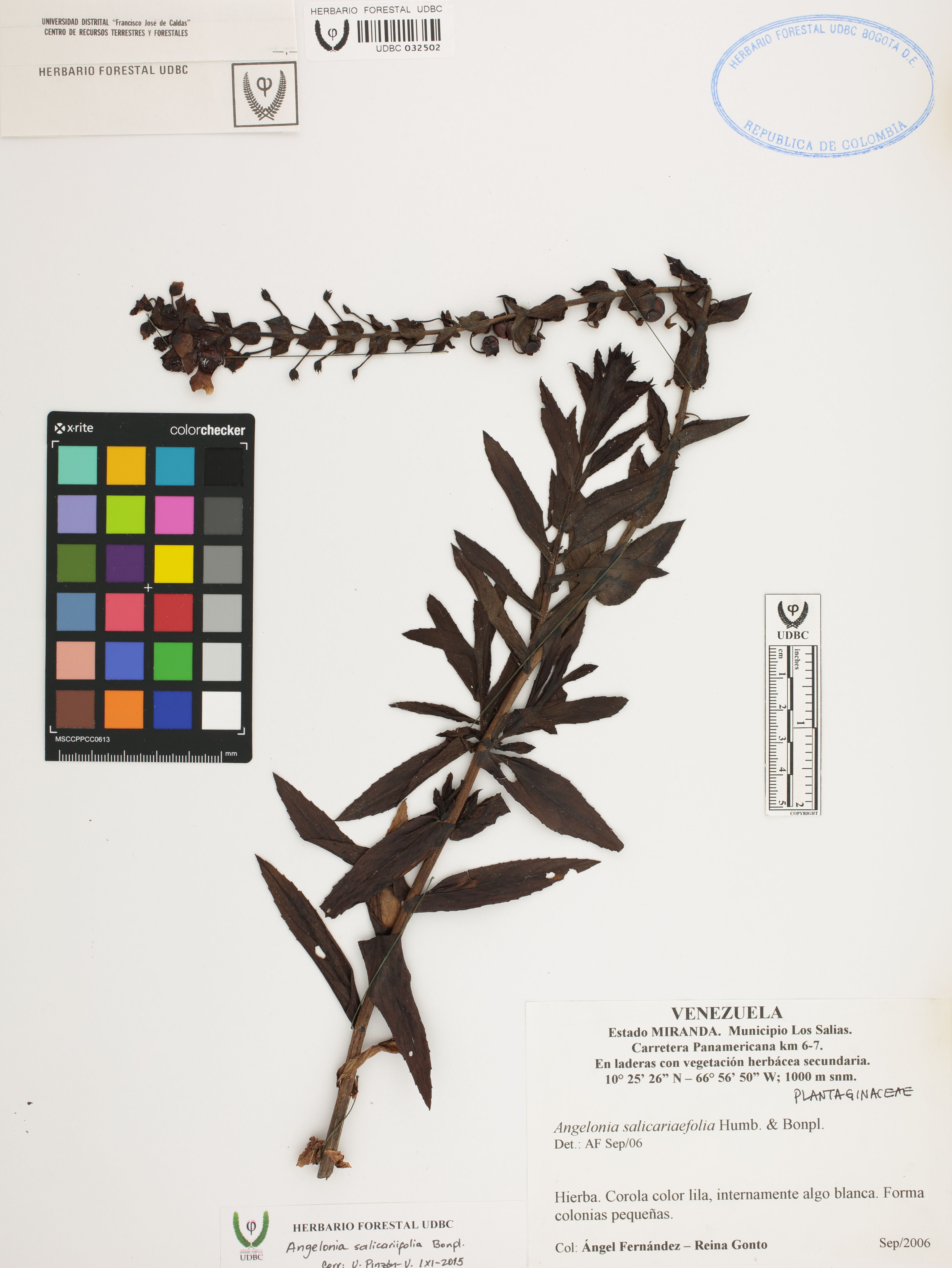 Fotografía del ejemplar Fernández, A., determinado como Angelonia salicariifolia en el año 2006