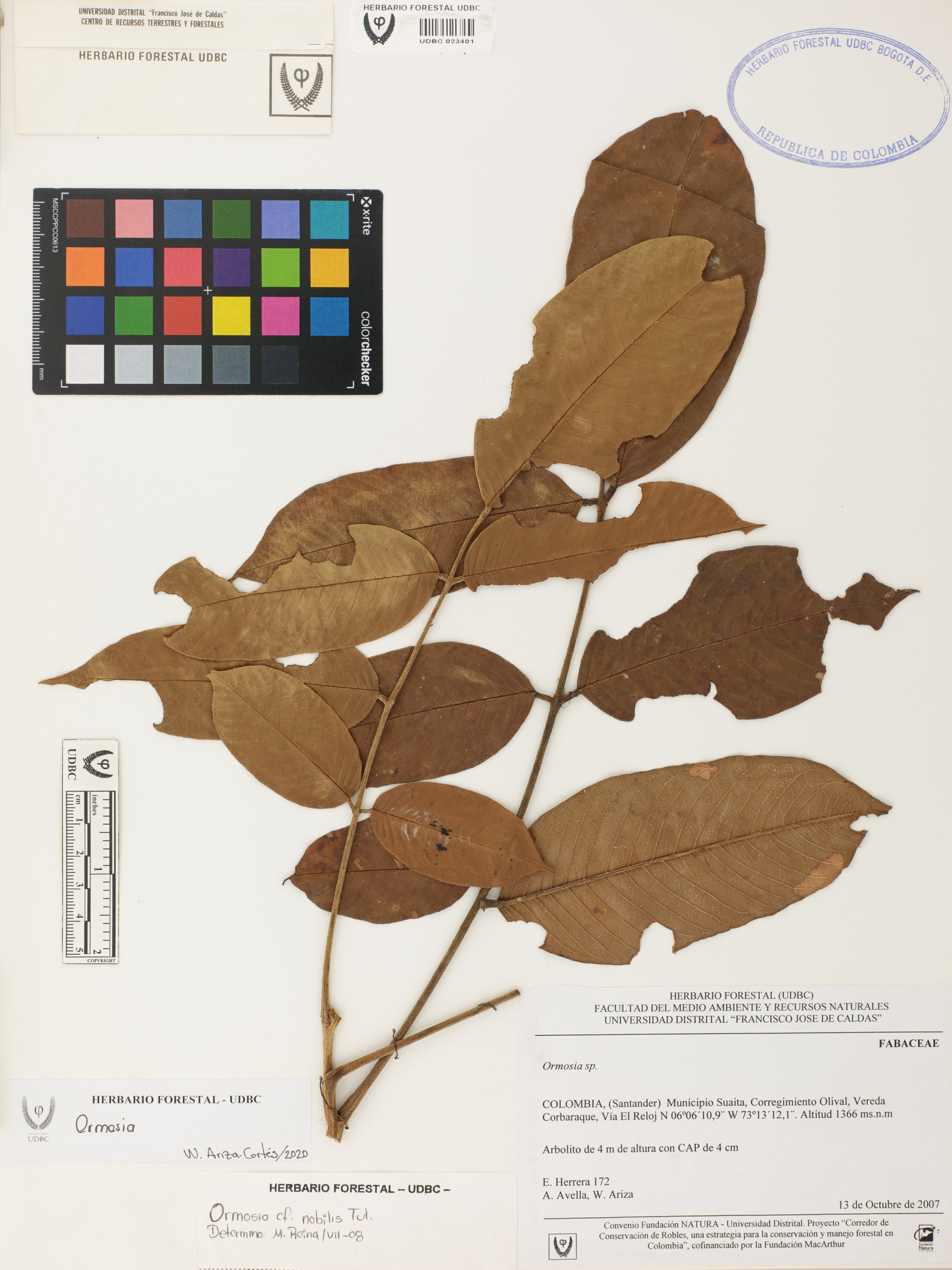 Fotografía del ejemplar Herrera, E. 172, determinado como Ormosia sp. en el año 2020