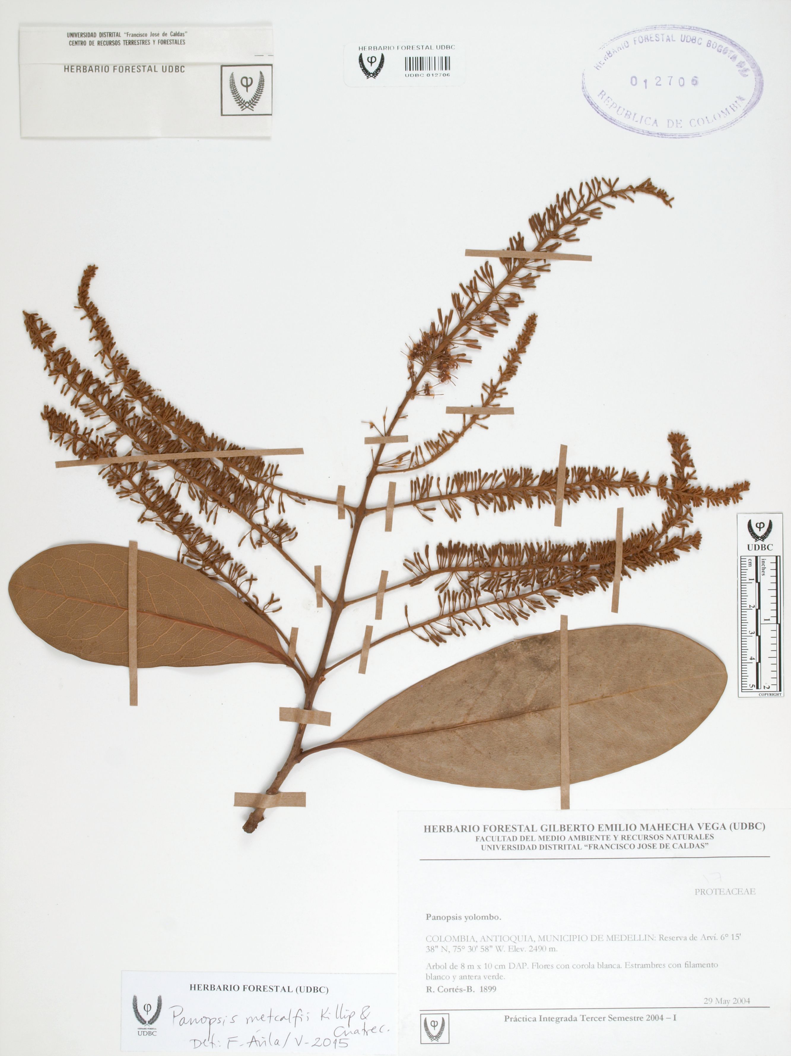 Fotografía del ejemplar Cortés-B., R. 1899, determinado como Panopsis metcalfii en el año 2015