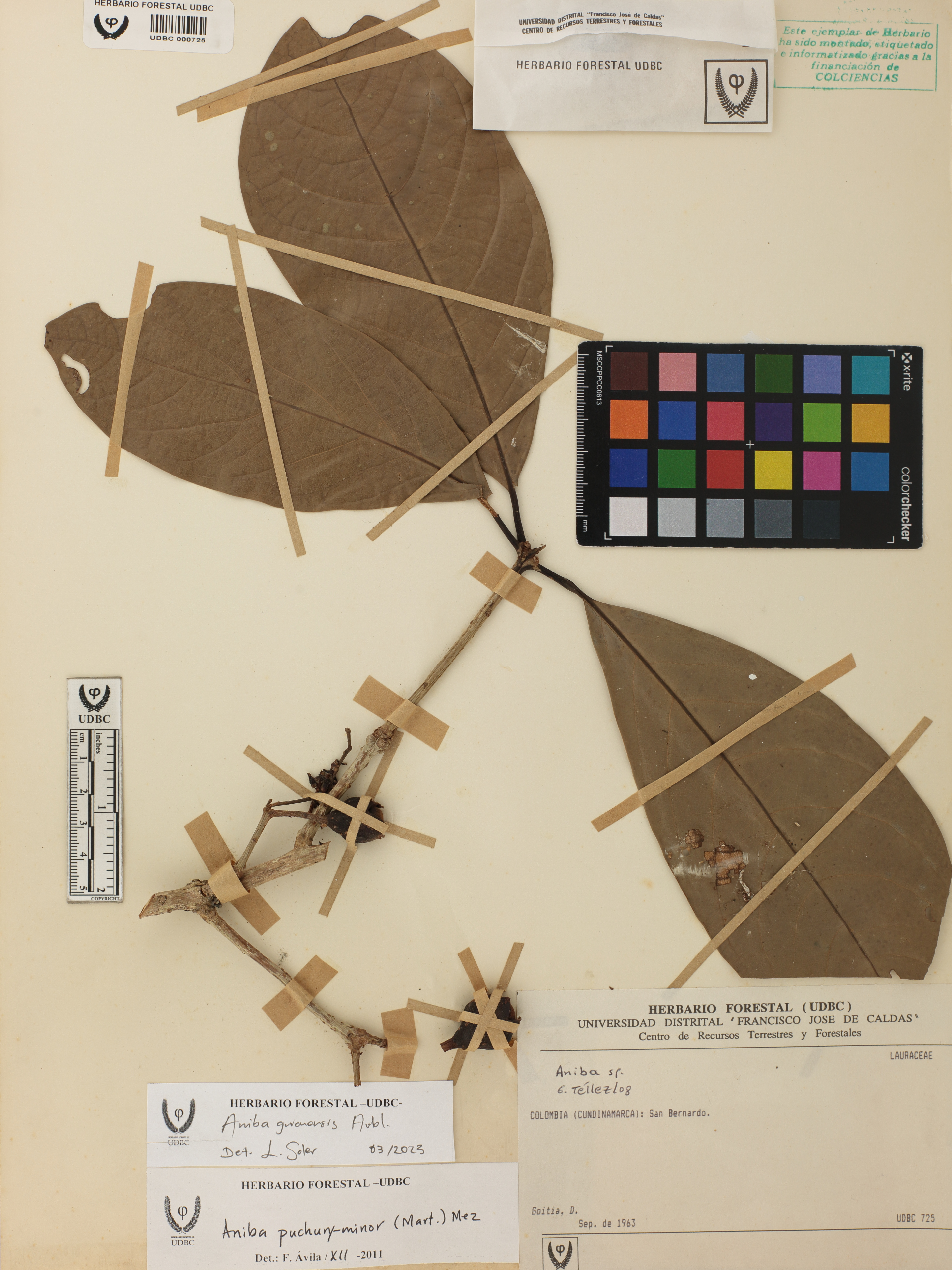 Fotografía del ejemplar Goitia, D., determinado como Aniba guianensis en el año 2023