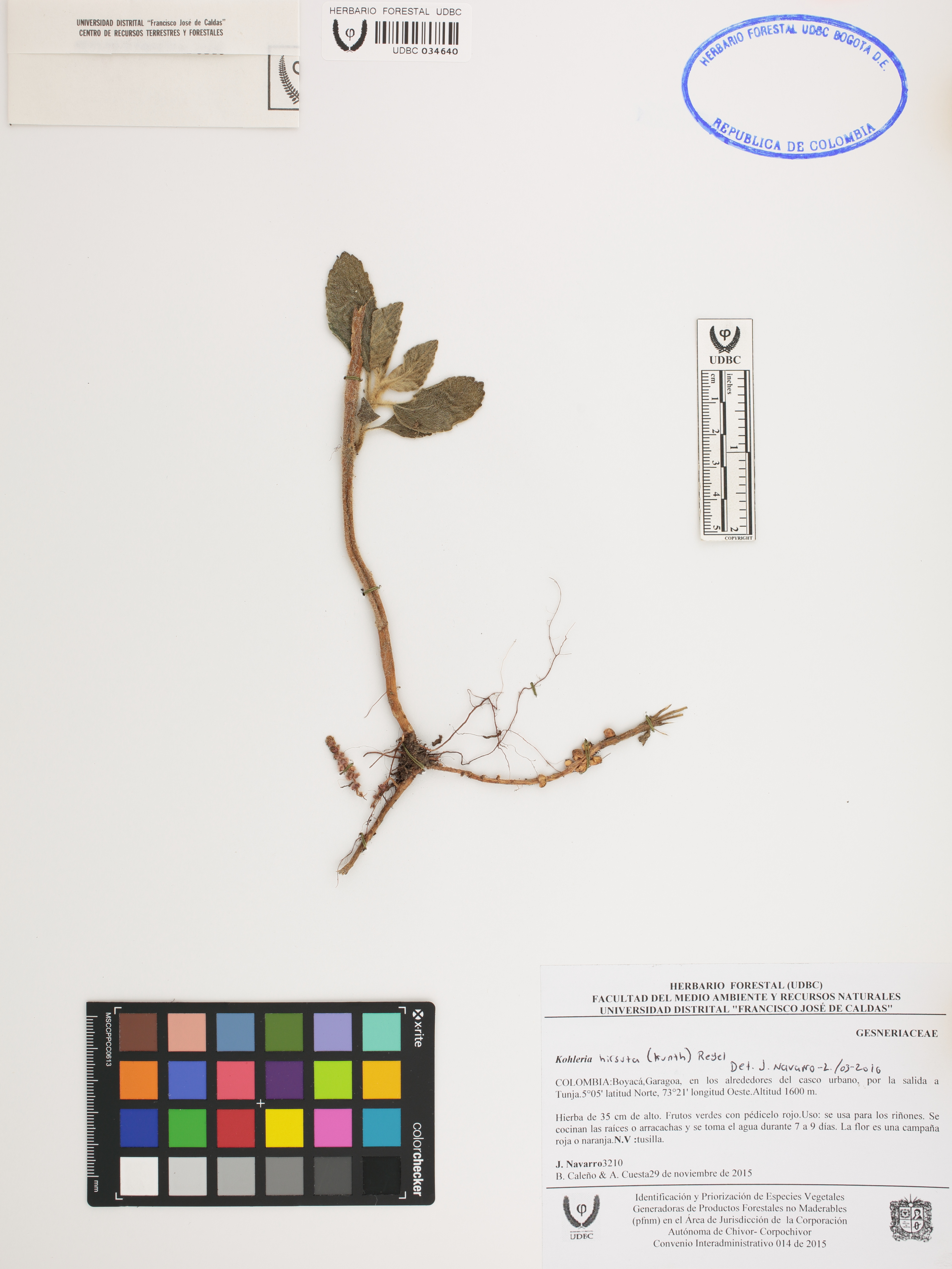 Fotografía del ejemplar Navarro, J. 3210, determinado como Kohleria hirsuta en el año 2016