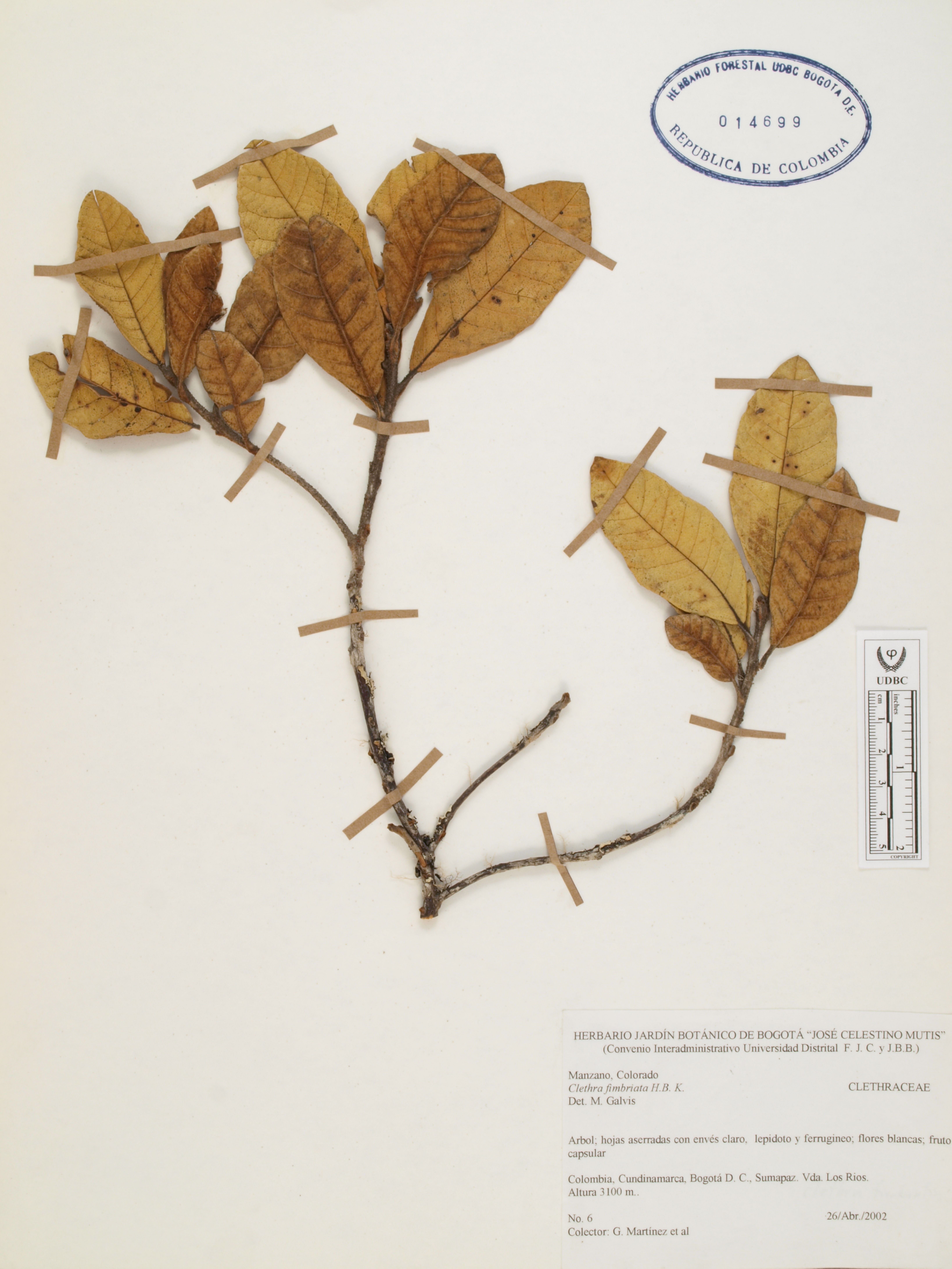 Fotografía del ejemplar Martínez, G. 6, determinado como Clethra fimbriata
