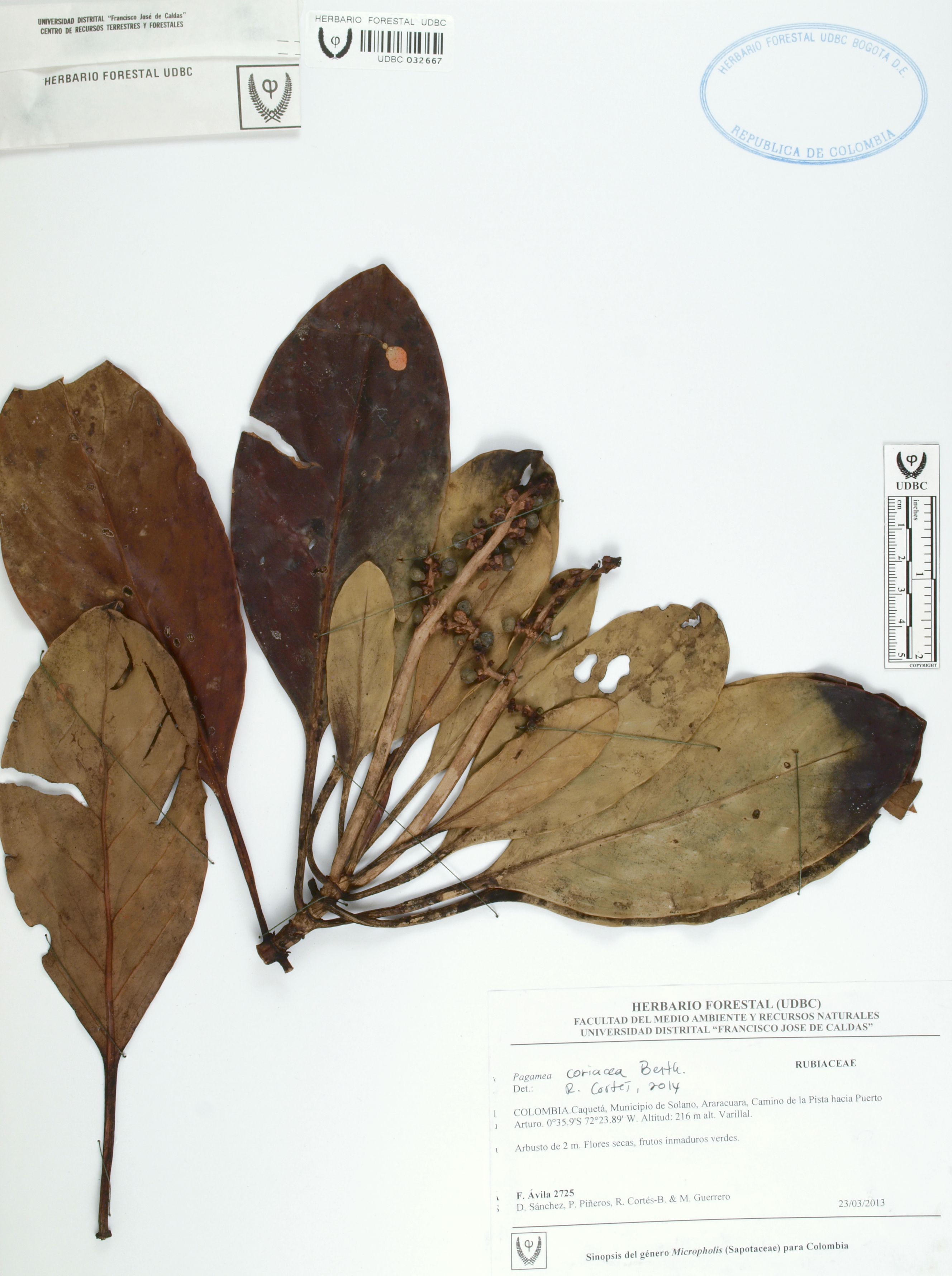 | dc.description | Fotografía del ejemplar Ávila, F. 2725, determinado como Pagamea coriacea en el año 2014 | |