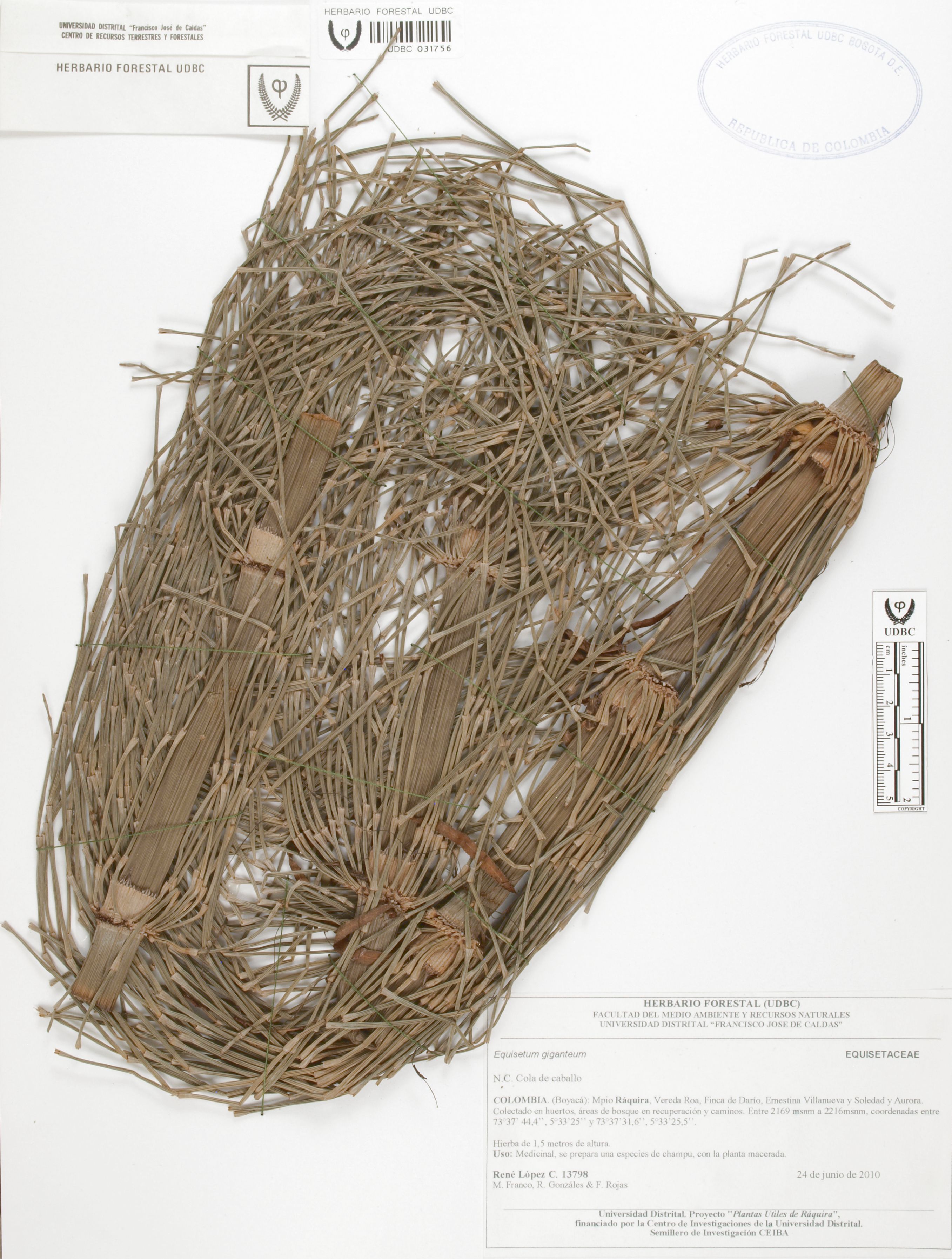 | dc.description | Fotografía del ejemplar López, R. 13798, determinado como Equisetum giganteum | |