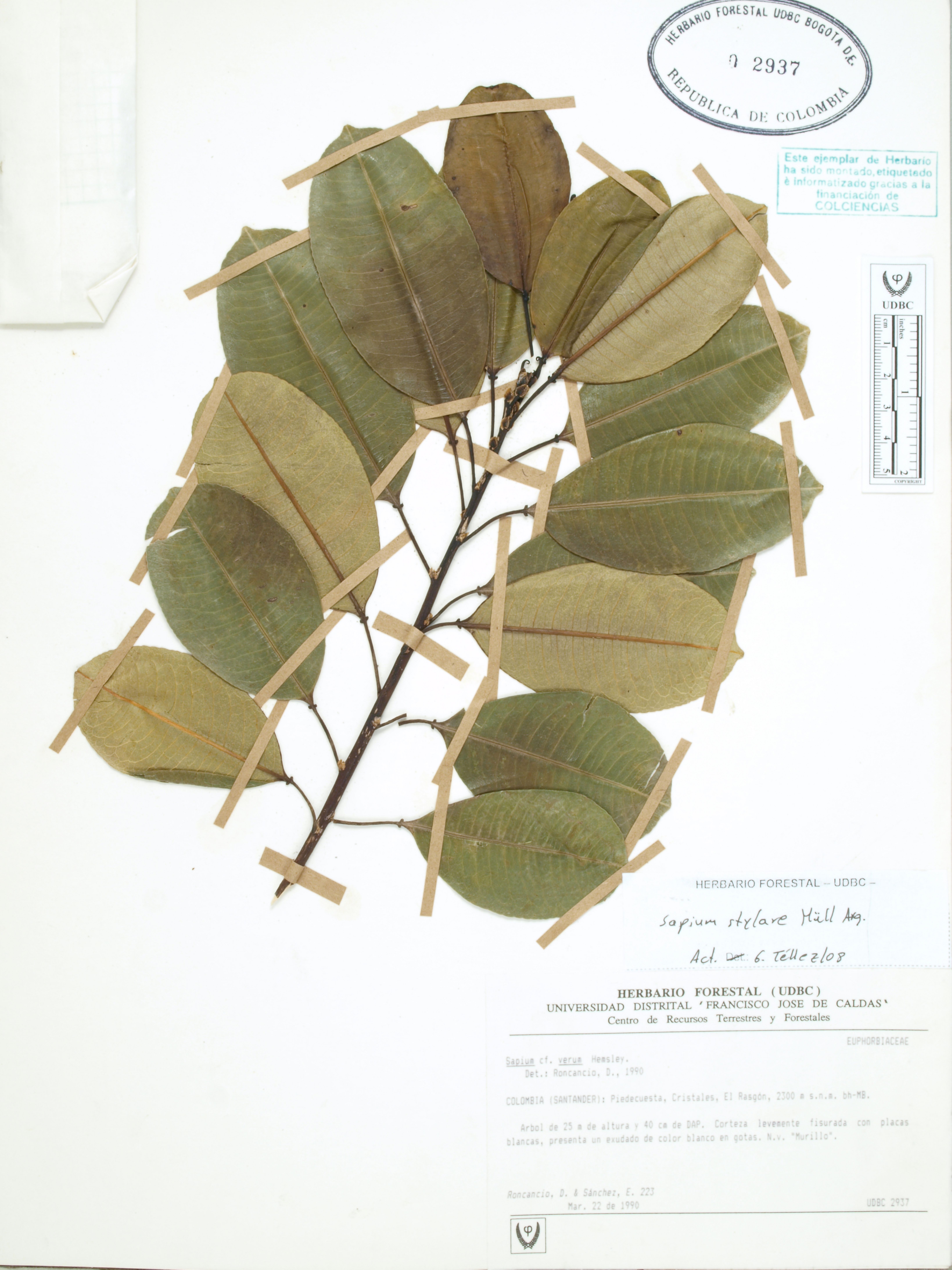 | dc.description | Fotografía del ejemplar Roncancio, D. 223, determinado como Sapium stylare en el año 2008 | |