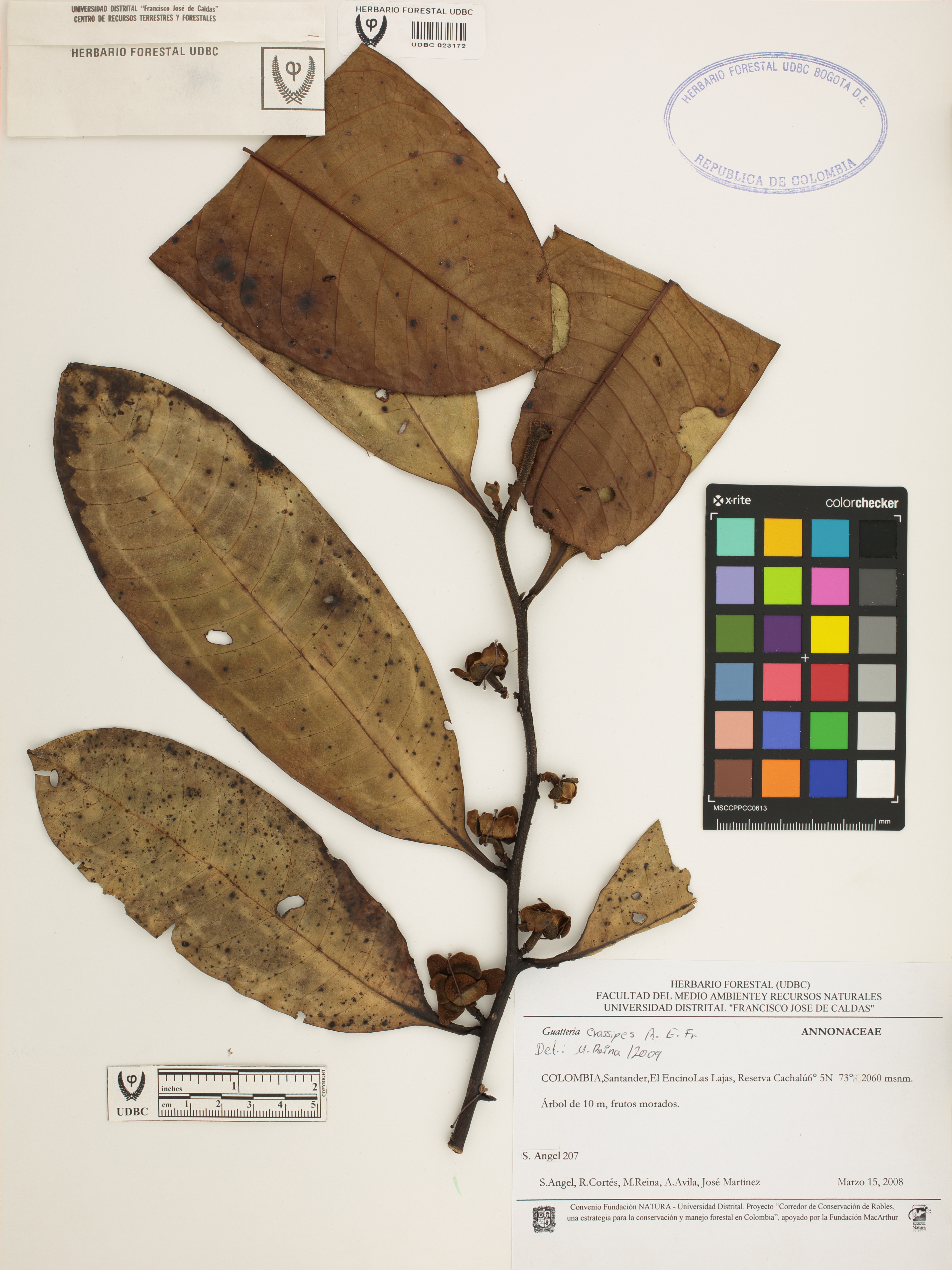 Fotografía del ejemplar Ángel, S. 207, determinado como Guatteria crassipes en el año 2009