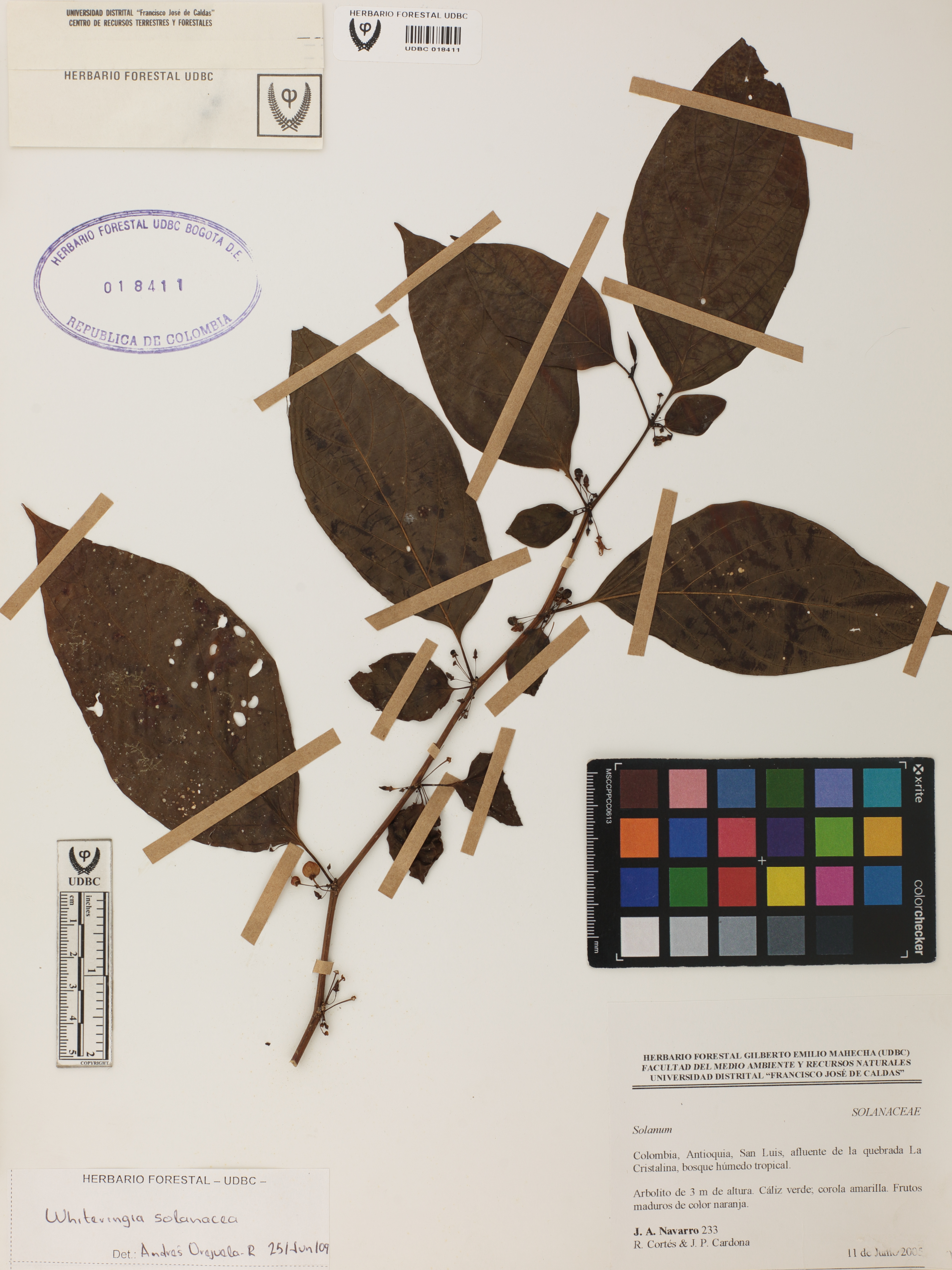 | dc.description | Fotografía del ejemplar Navarro, J. 233, determinado como Witheringia solanacea en el año 2009 | |