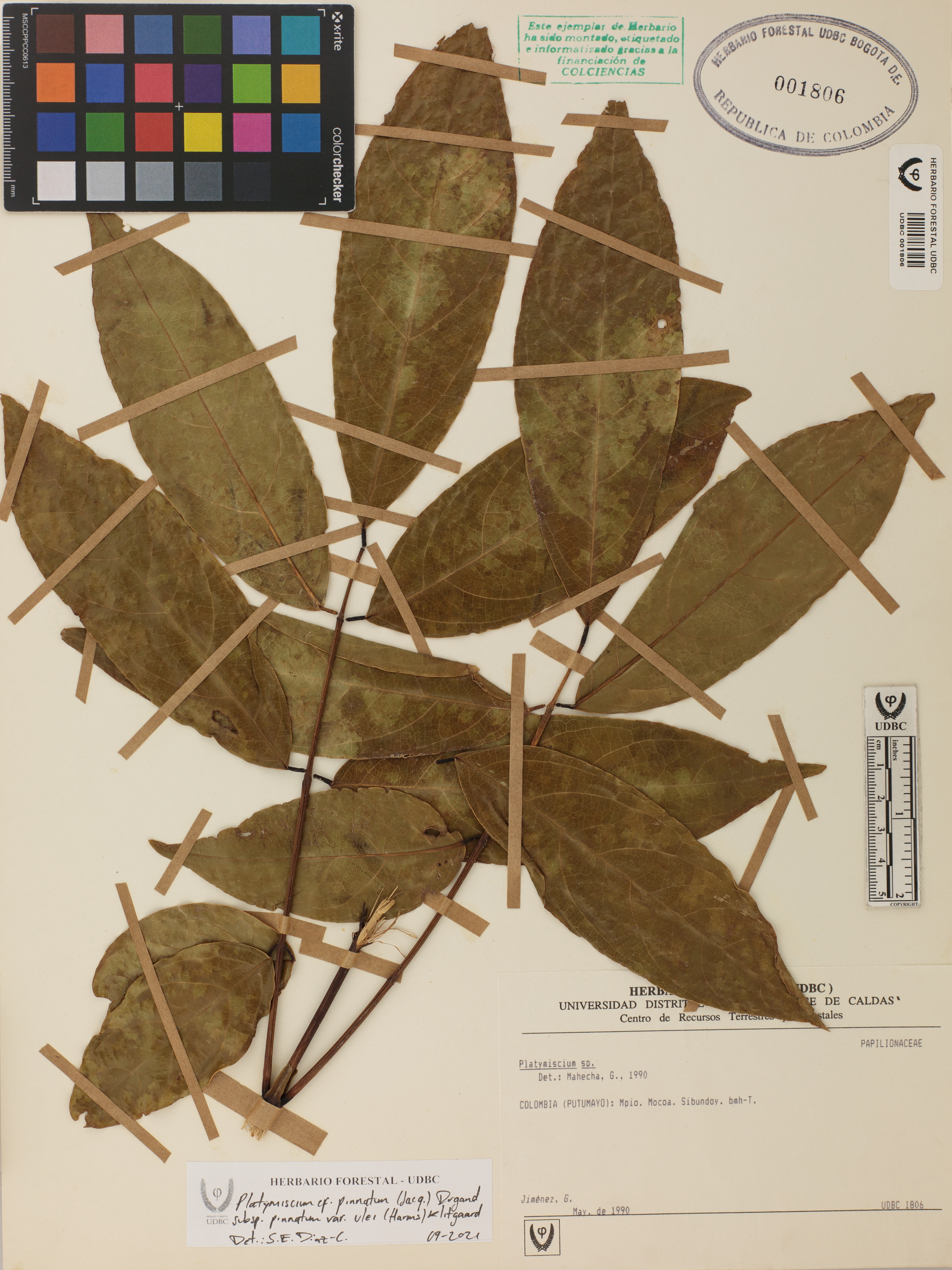 Fotografía del ejemplar Jiménez, G., determinado como Platymiscium pinnatum subsp. pinnatum var. ulei en el año 2021