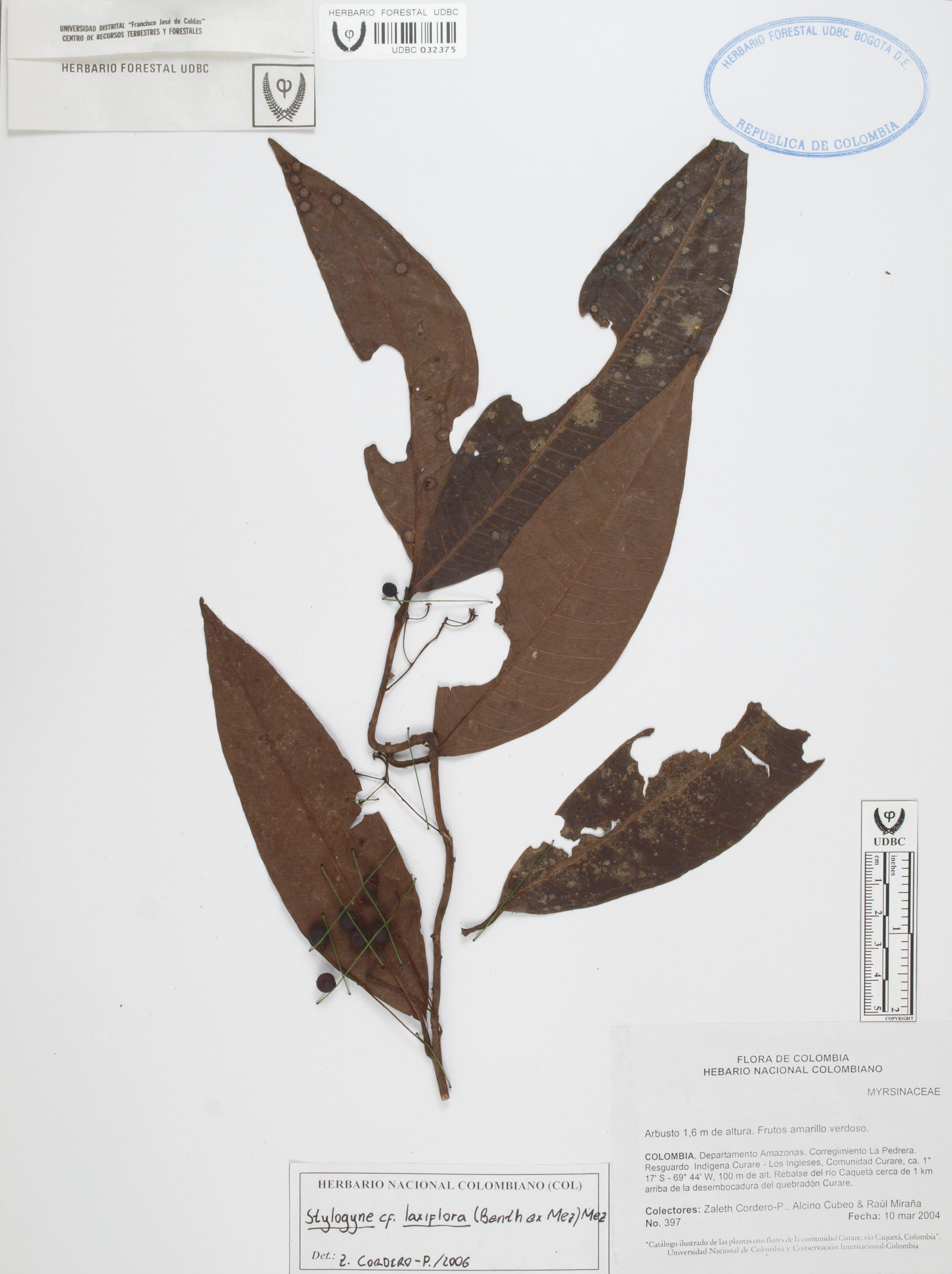 Fotografía del ejemplar Cordero-P., Z. 397, determinado como Stylogyne laxiflora en el año 2006