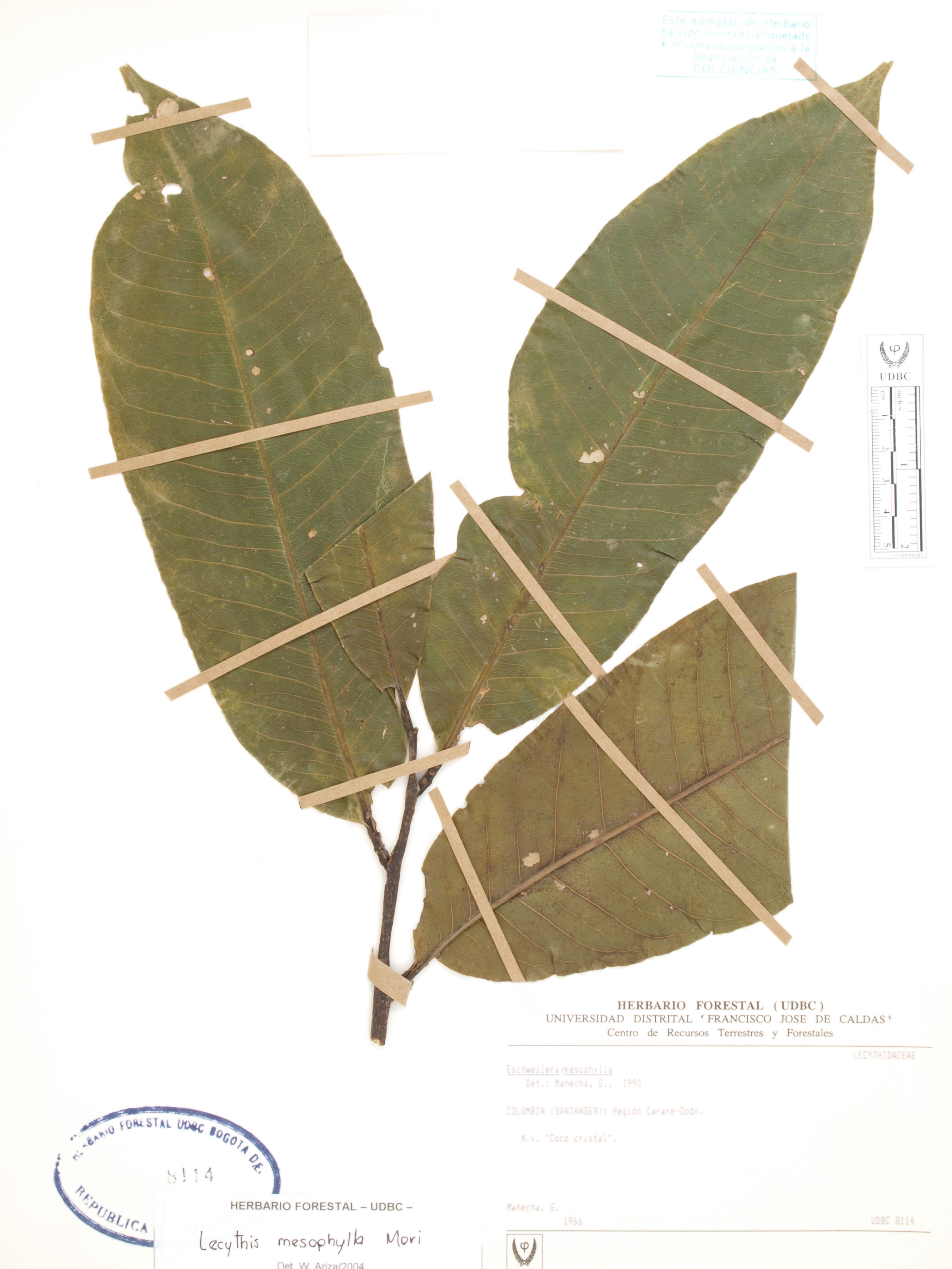 | dc.description | Fotografía del ejemplar Mahecha, G., determinado como Lecythis mesophylla en el año 2004 | |