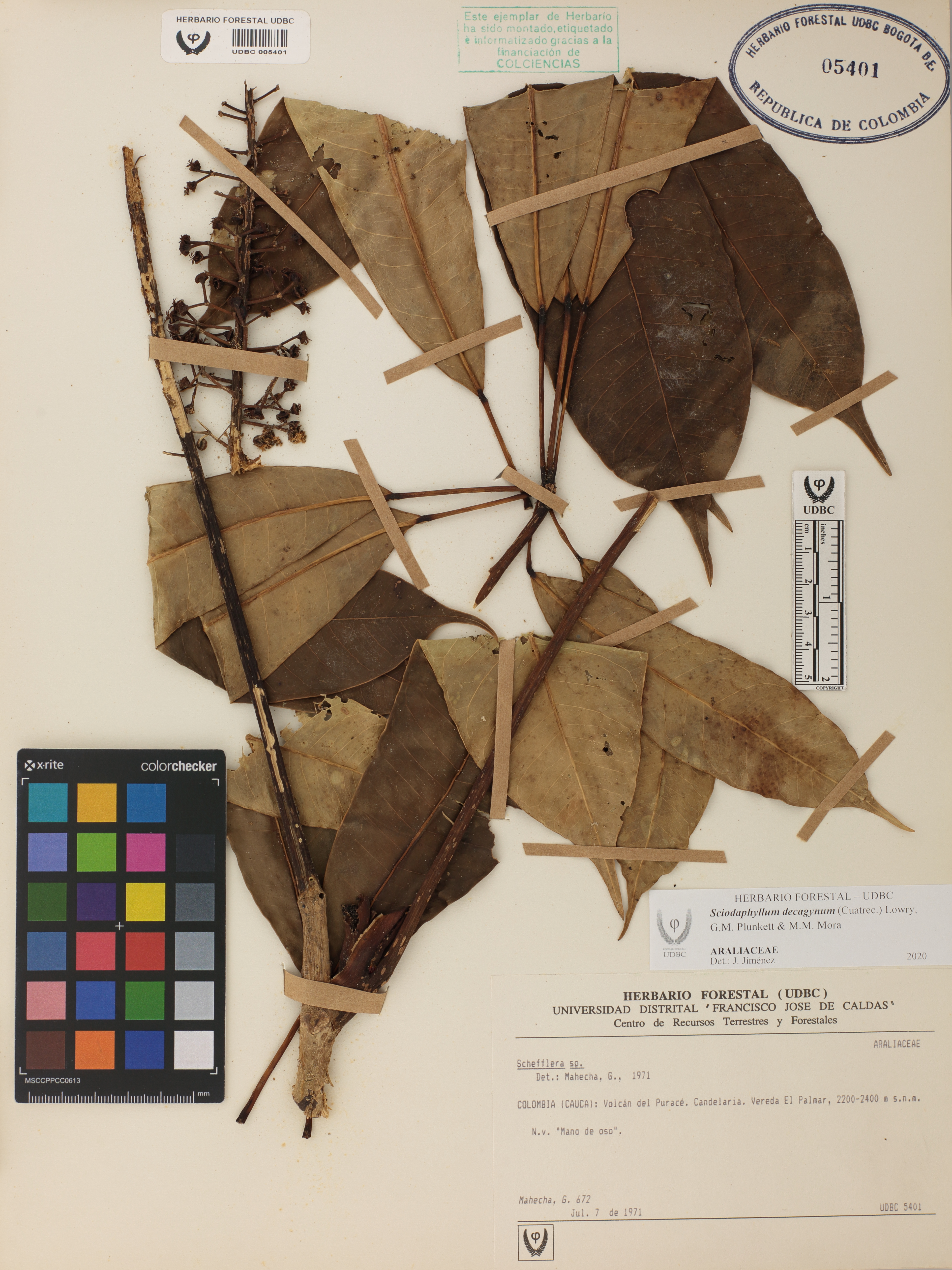 | dc.description | Fotografía del ejemplar Mahecha, G. 672, determinado como Sciodaphyllum decagynum en el año 2020 | |