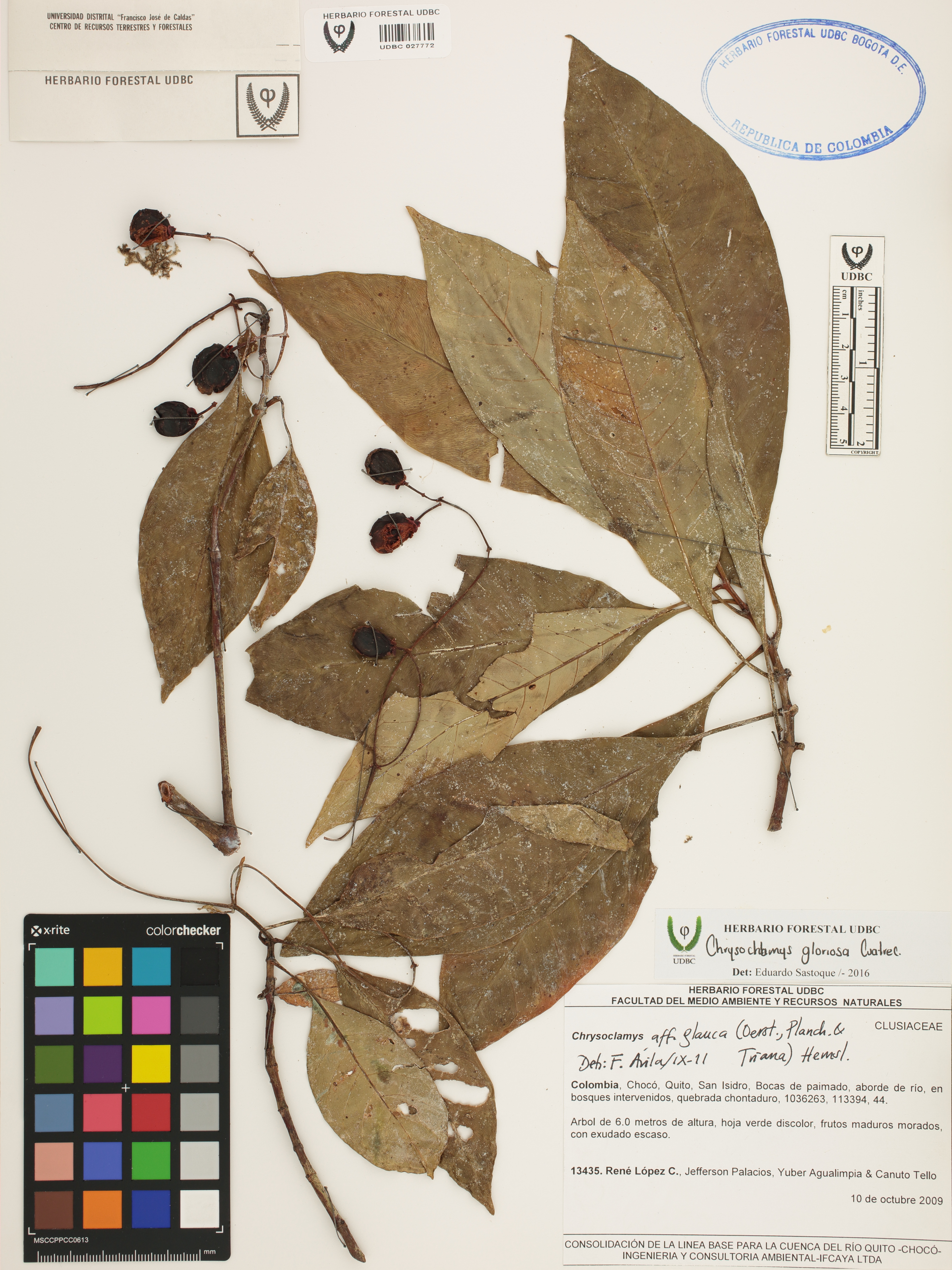 Fotografía del ejemplar López, R. 13435, determinado como Chrysochlamys gloriosa en el año 2016