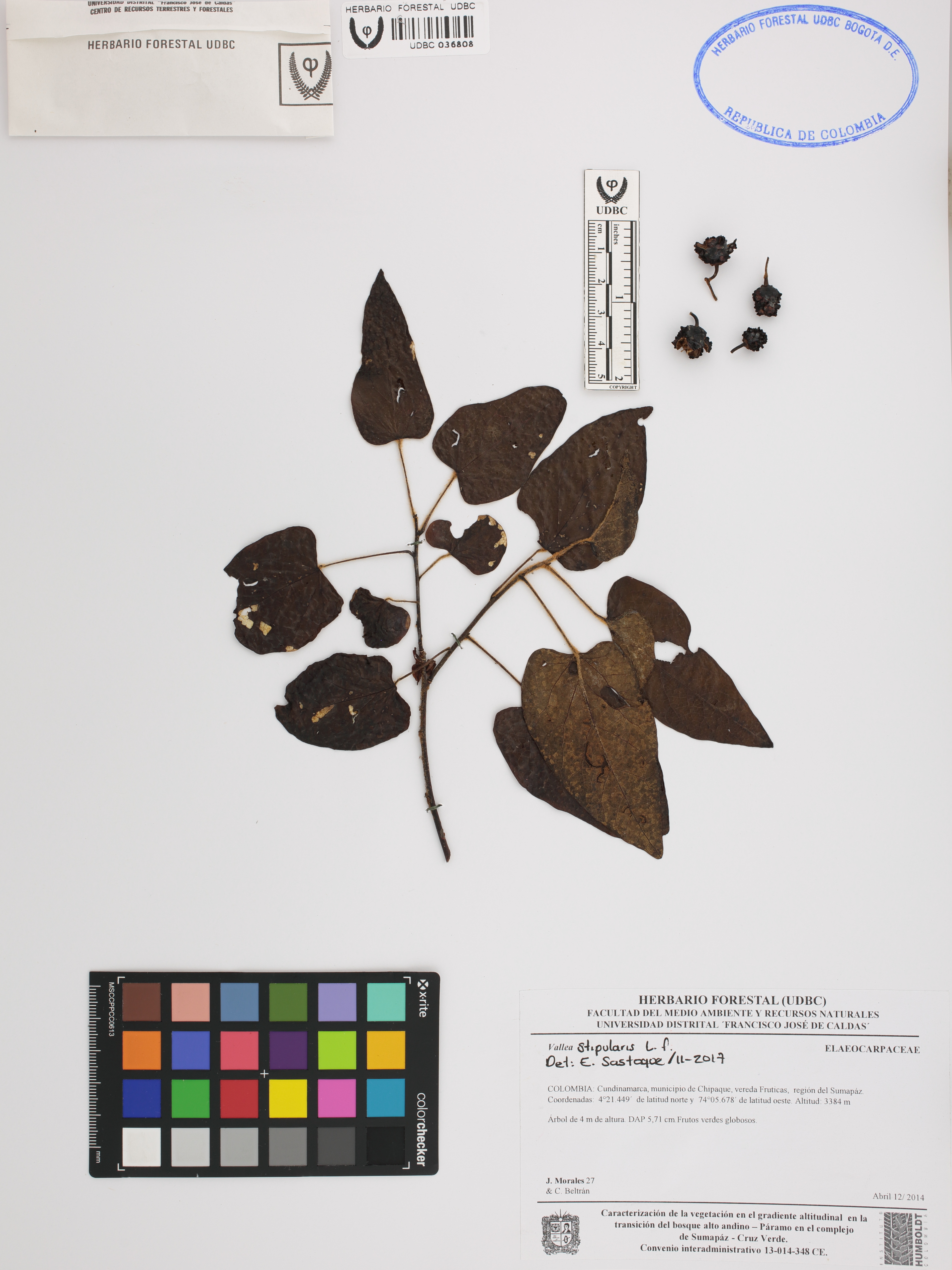 | dc.description | Fotografía del ejemplar Morales, J. 27, determinado como Vallea stipularis en el año 2017 | |