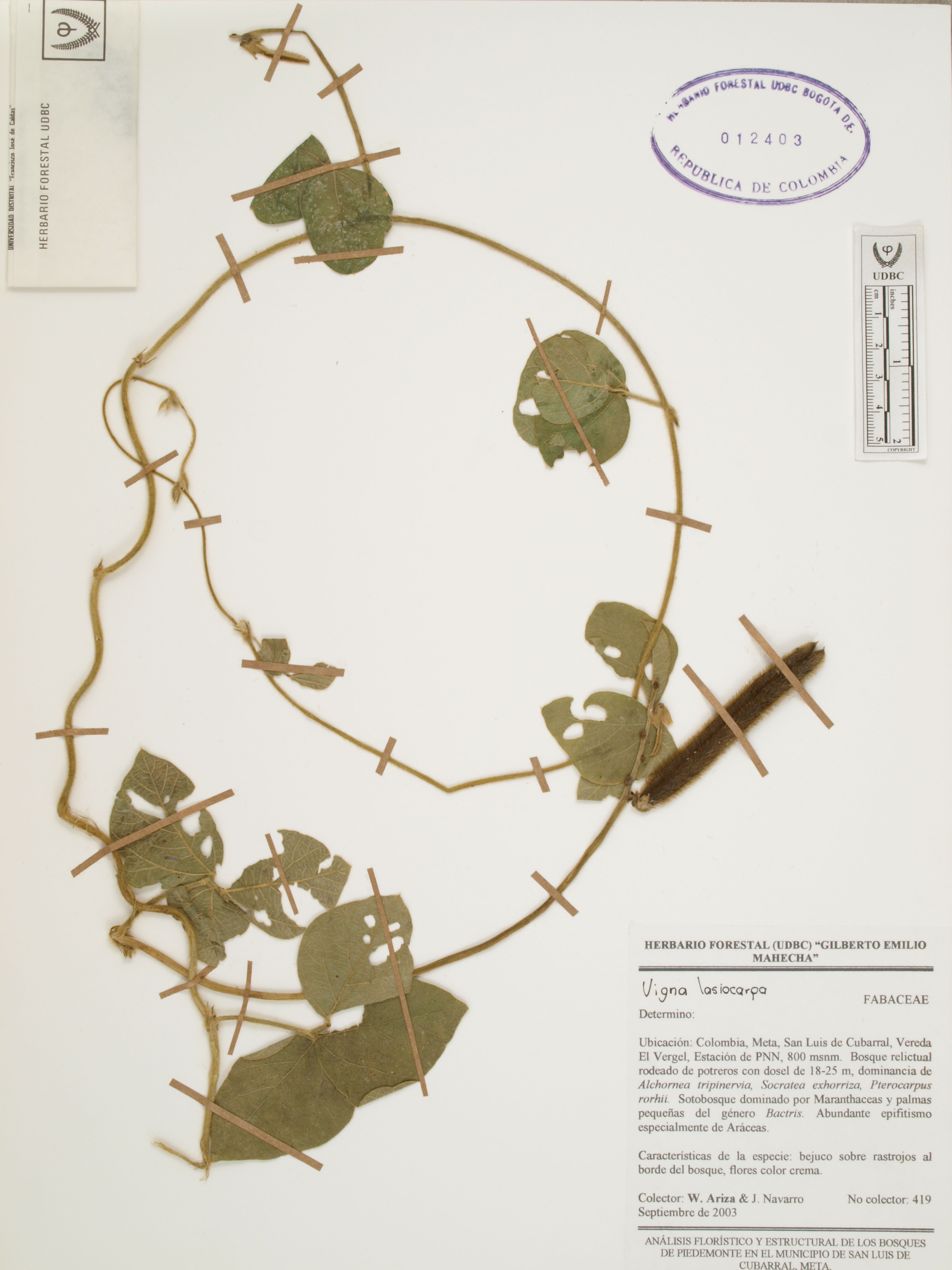 | dc.description | Fotografía del ejemplar Ariza, W. 419, determinado como Vigna lasiocarpa | |