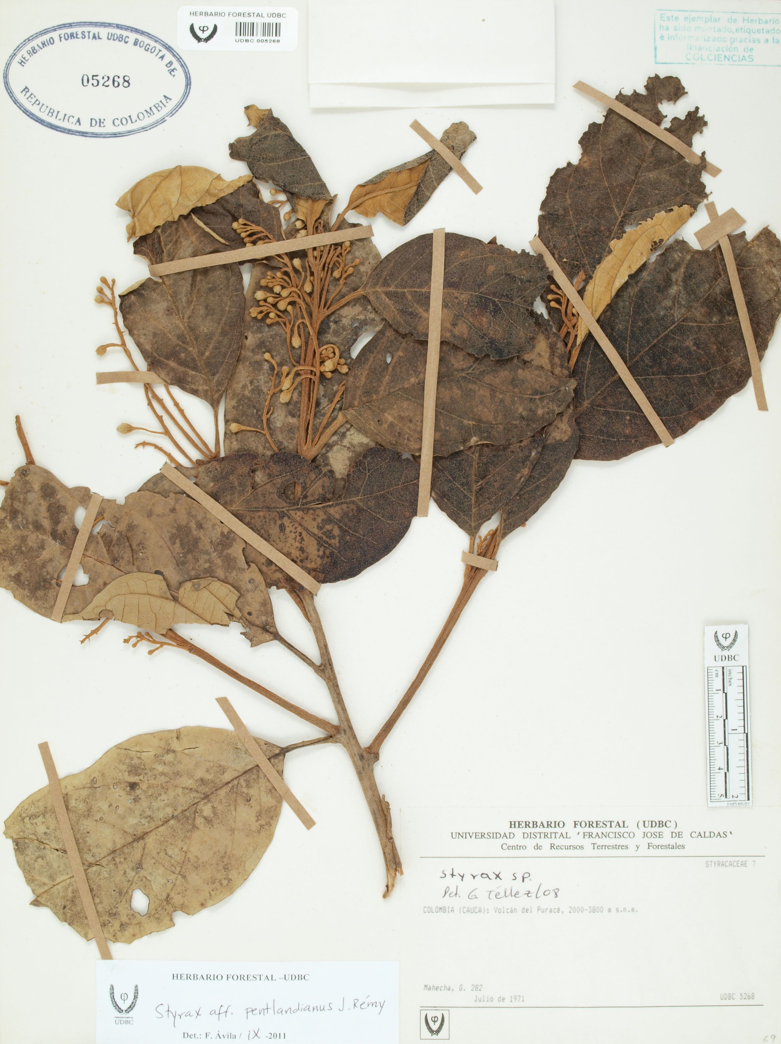 Fotografía del ejemplar Mahecha, G. 282, determinado como Styrax pentlandianus en el año 2011