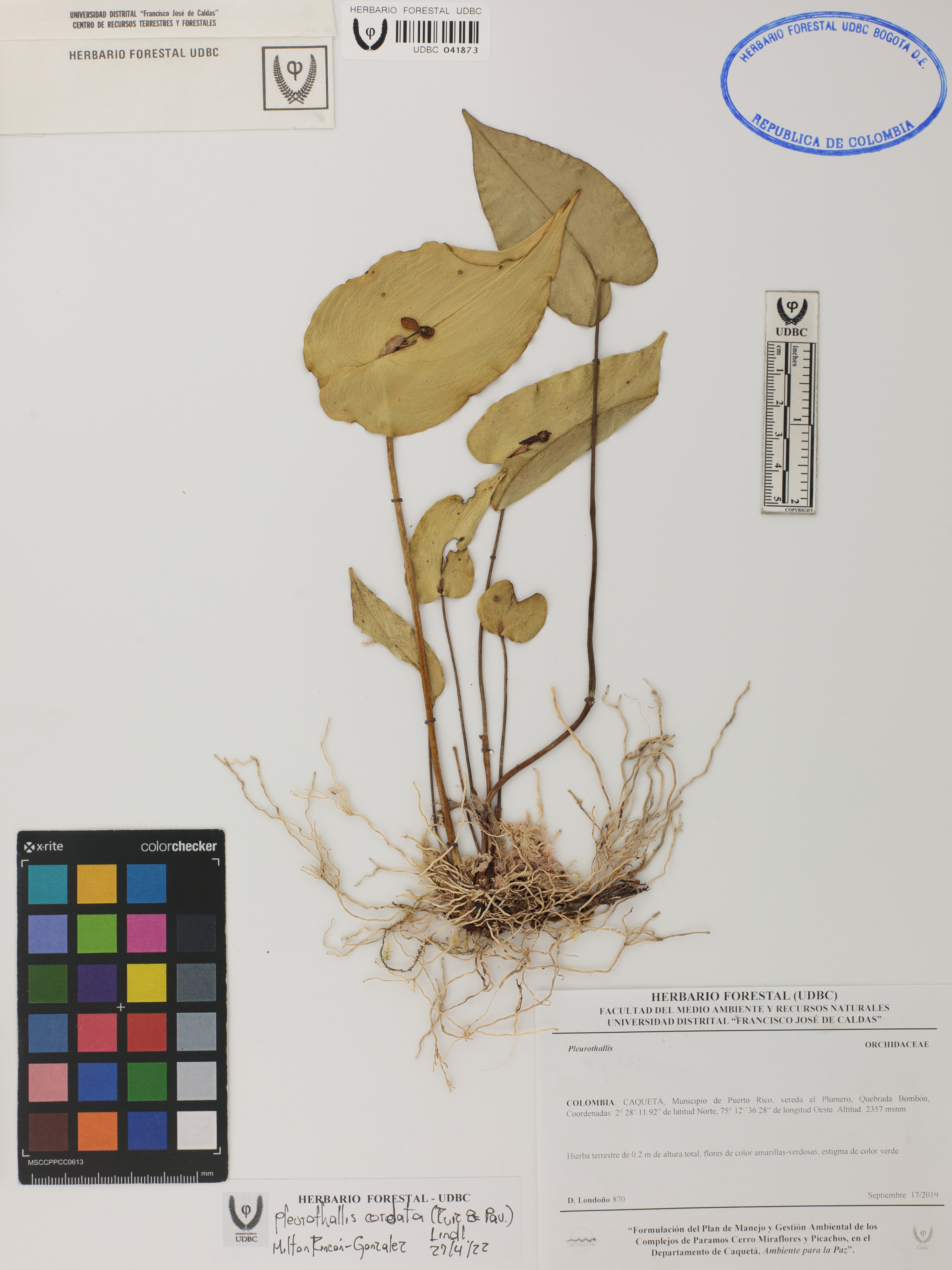 | dc.description | Fotografía del ejemplar Londoño, D. 870, determinado como Pleurothallis cordata en el año 2022 | |