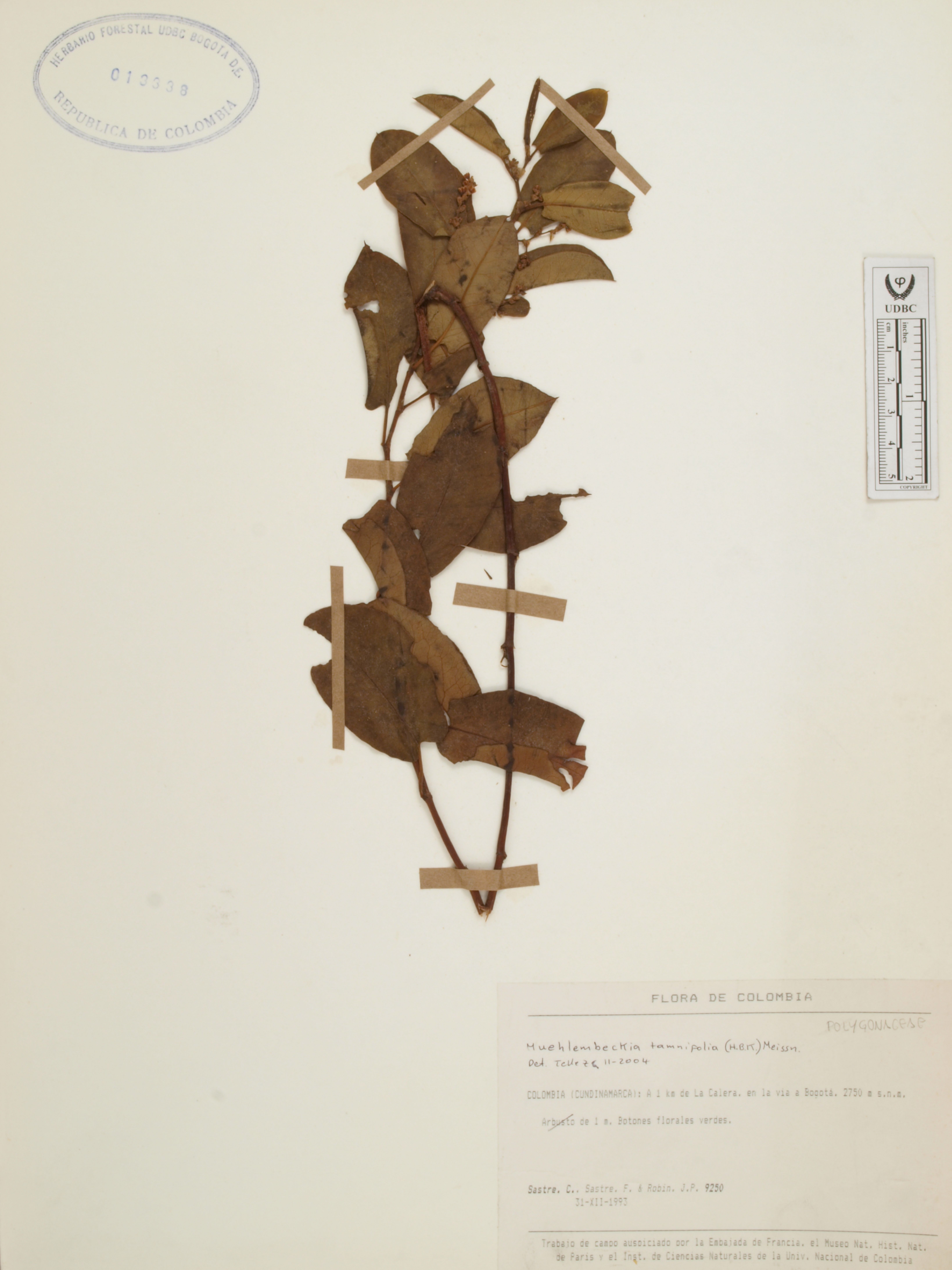 Fotografía del ejemplar Sastre, C. 9250, determinado como Muehlenbeckia tamnifolia en el año 2004