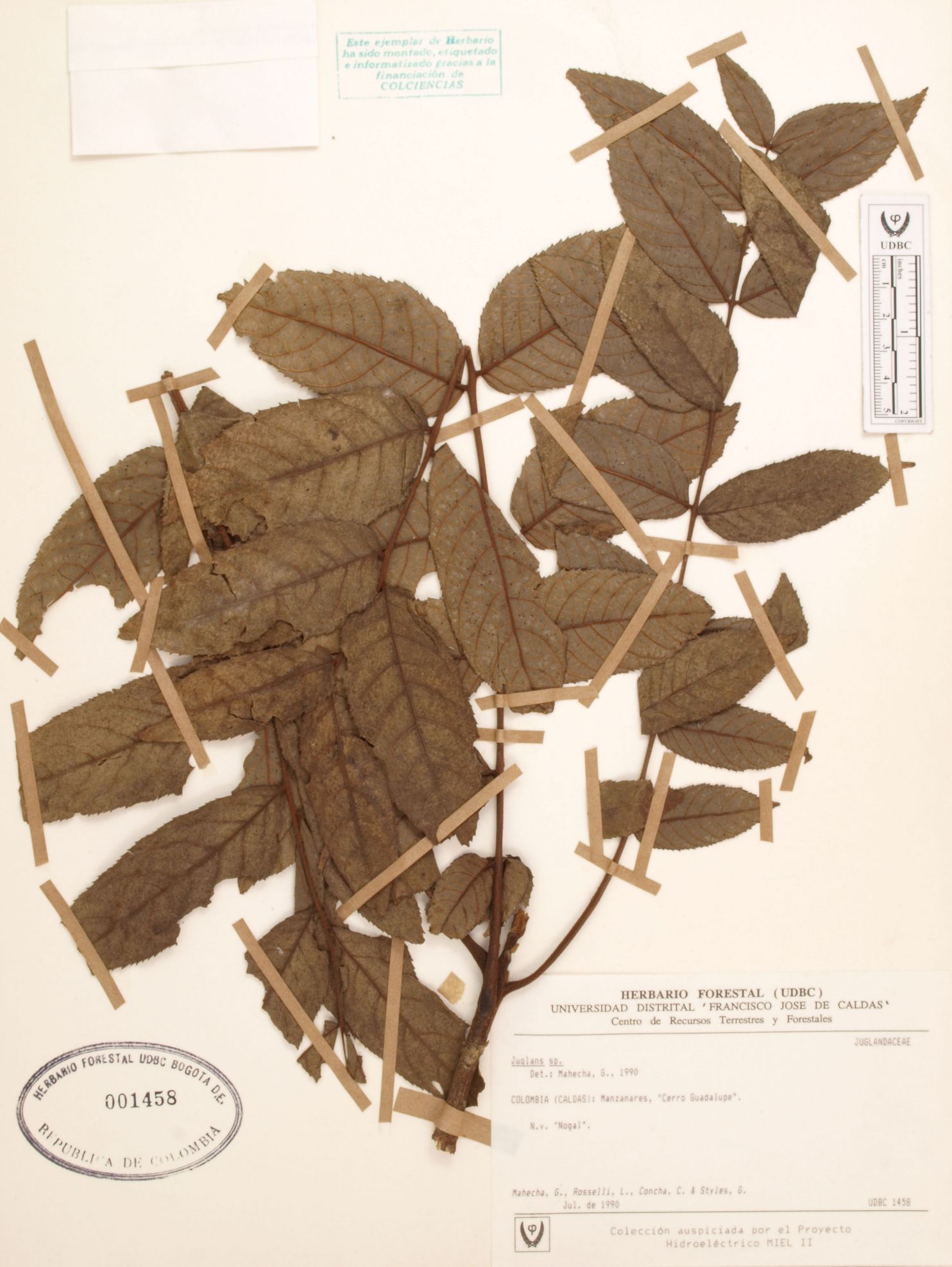 Fotografía del ejemplar Mahecha, G., determinado como Juglans sp. en el año 1990