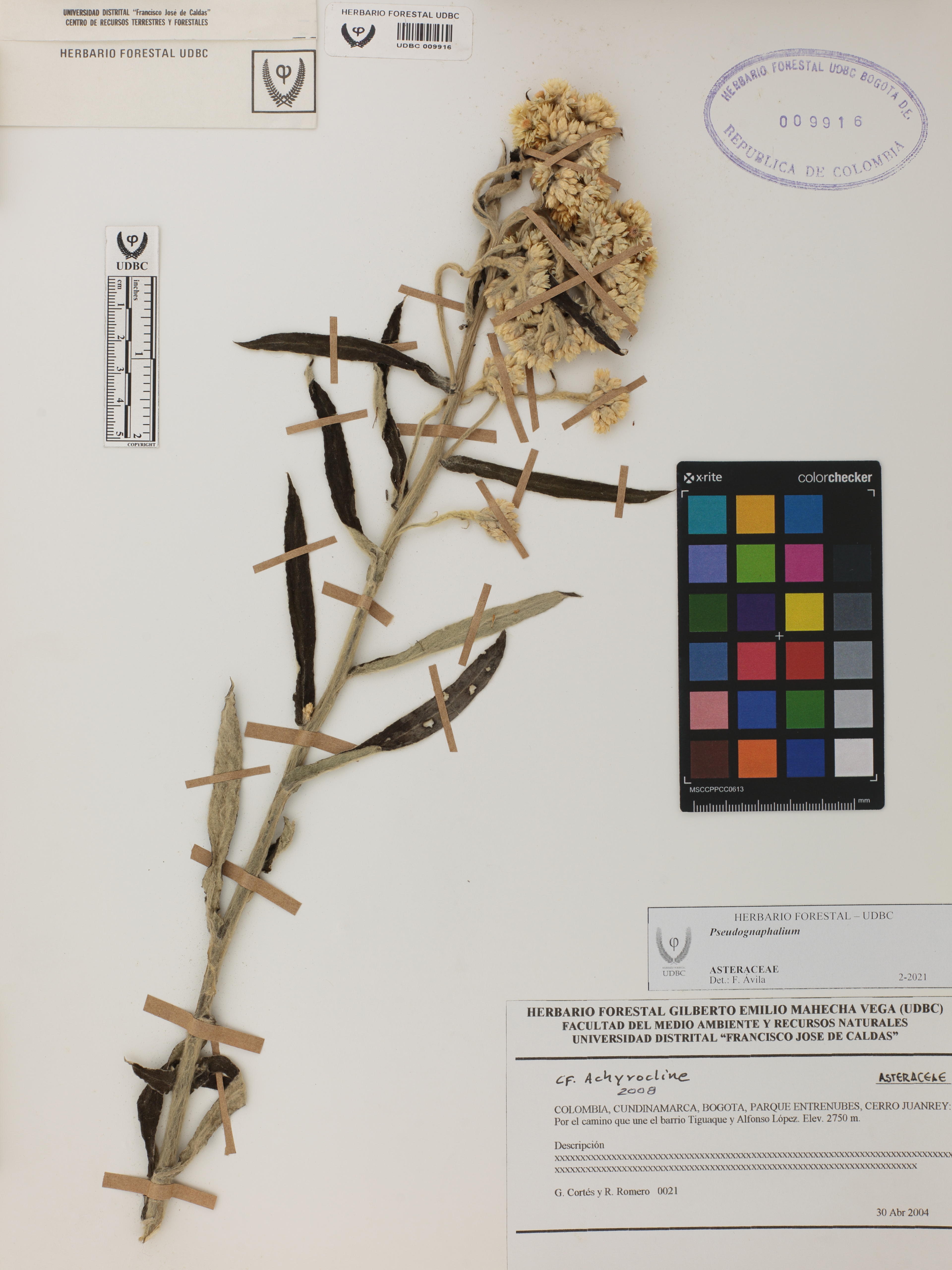 Fotografía del ejemplar Cortés, G. 21, determinado como Pseudognaphalium sp. en el año 2021