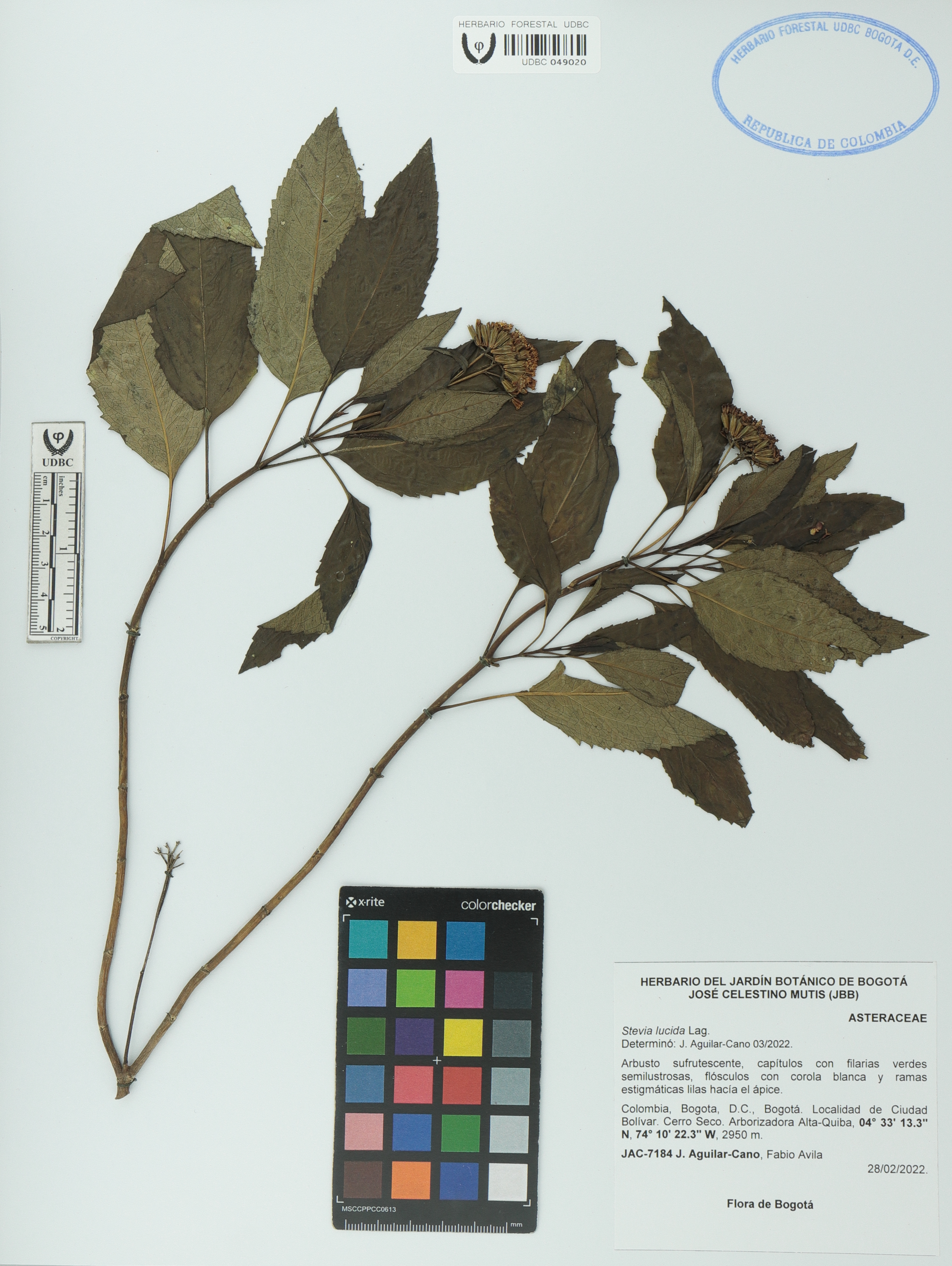 Fotografía del ejemplar Aguilar-Cano, J. 7184, determinado como Stevia lucida en el año 2022