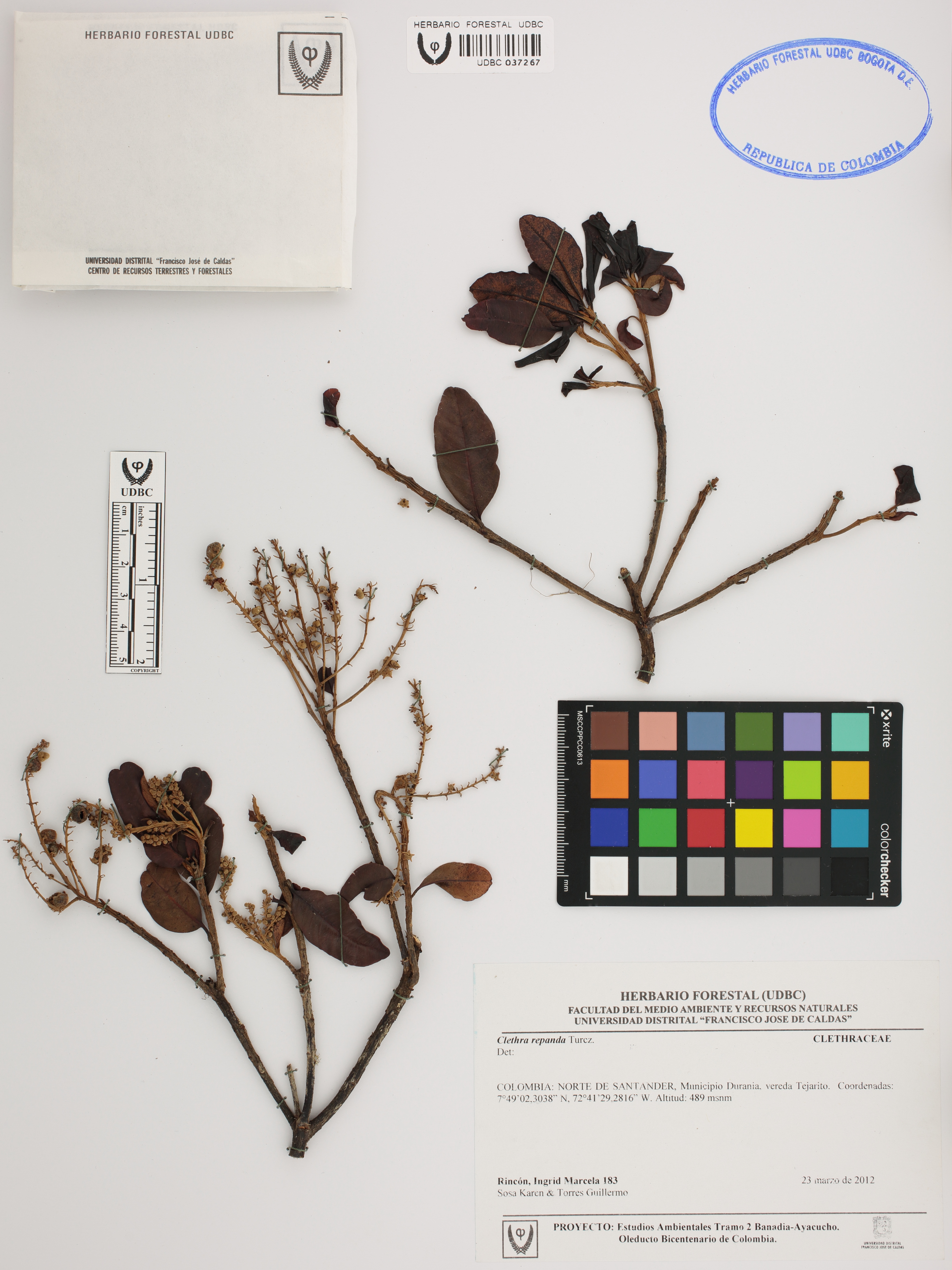 Fotografía del ejemplar Rincón, I. 183, determinado como Clethra repanda
